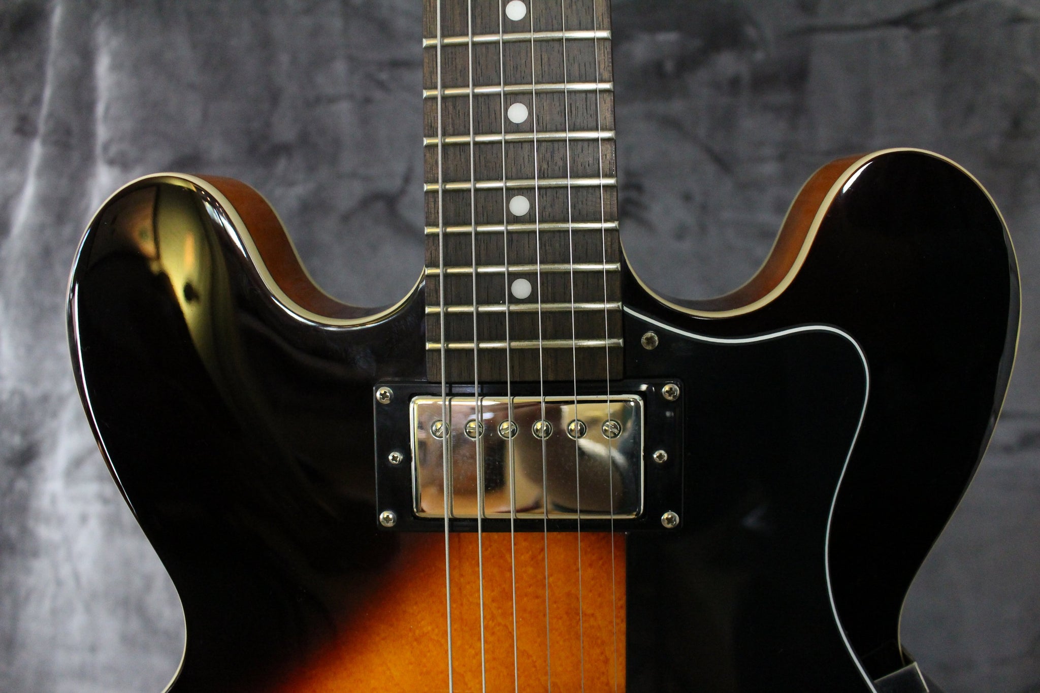 Cosmetics: This guitar is in great shape. It has light surface scratches on the body. The back of the neck is clean, and the frets show minimal wear. There is some light tarnishing on the stop tail piece. Overall, this guitar plays very well and sounds fantastic.