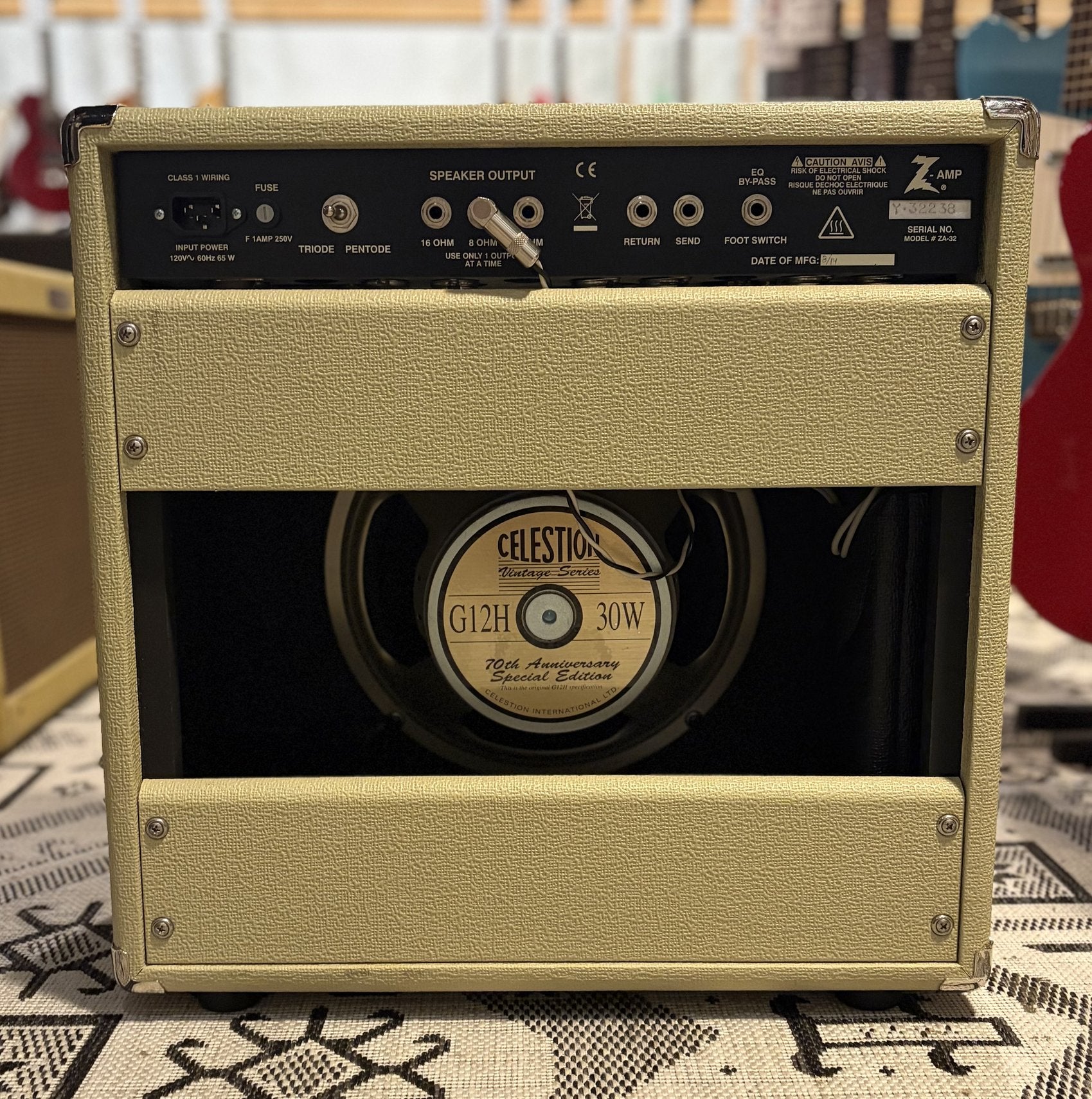 This is a used and fully tested Dr. Z MAZ 8 combo amp. This amp has a Celestion G12H 12" speaker (30w) and a nice blonde tolex cabinet.