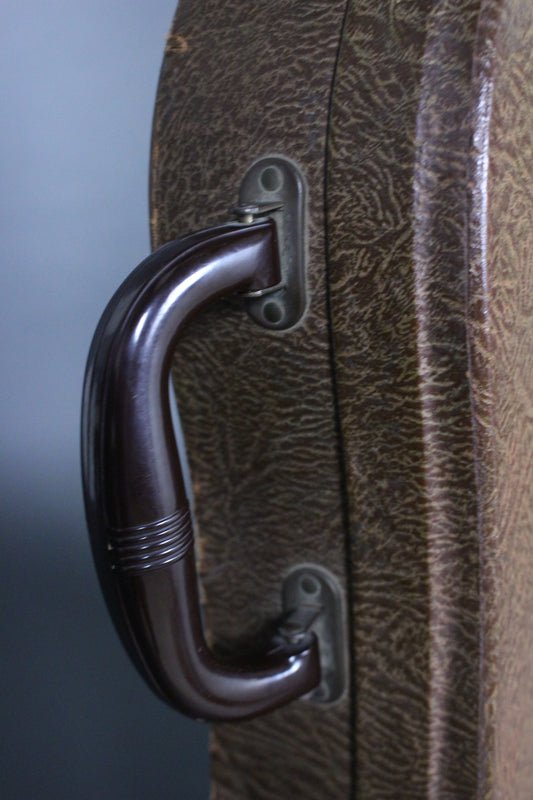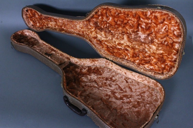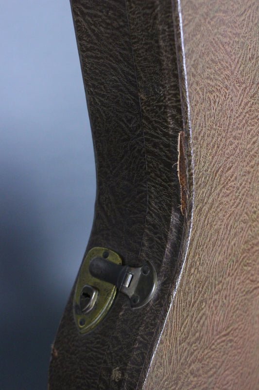 Case: This guitar ships with the original hardshell Bulwin “thermometer” case, professionally packaged, and fully insured. The case is also in excellent condition with only a few lifted spots on the edges. The latches all work but the middle one has lost its spring to it but still closes properly.