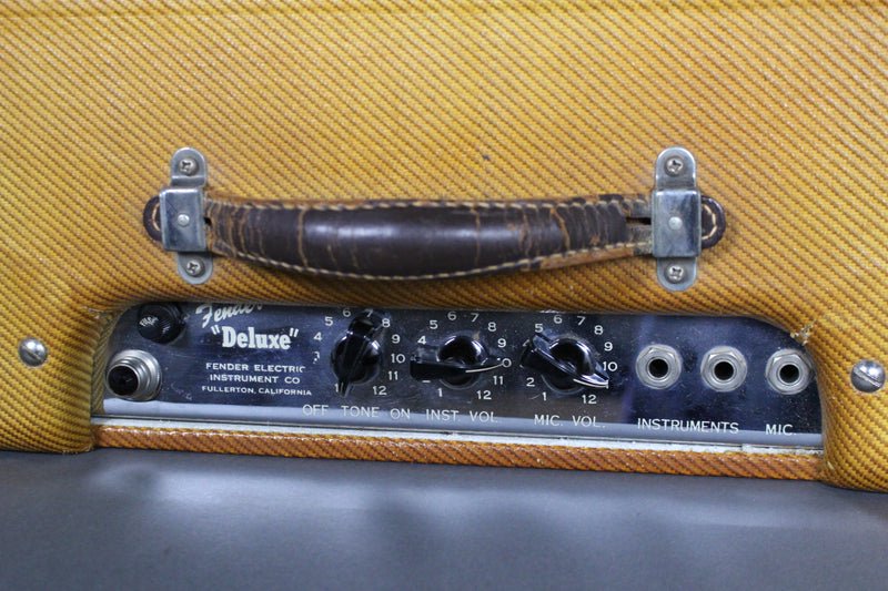 Amp: The 1952 Fender Deluxe amp is also in remarkable condition with no modifications. It maintains its original tweed with no tears, original speaker, original caps, original tubes, and even includes the original cover, which is also in excellent shape. The amp is in excellent working condition and functions as it should.