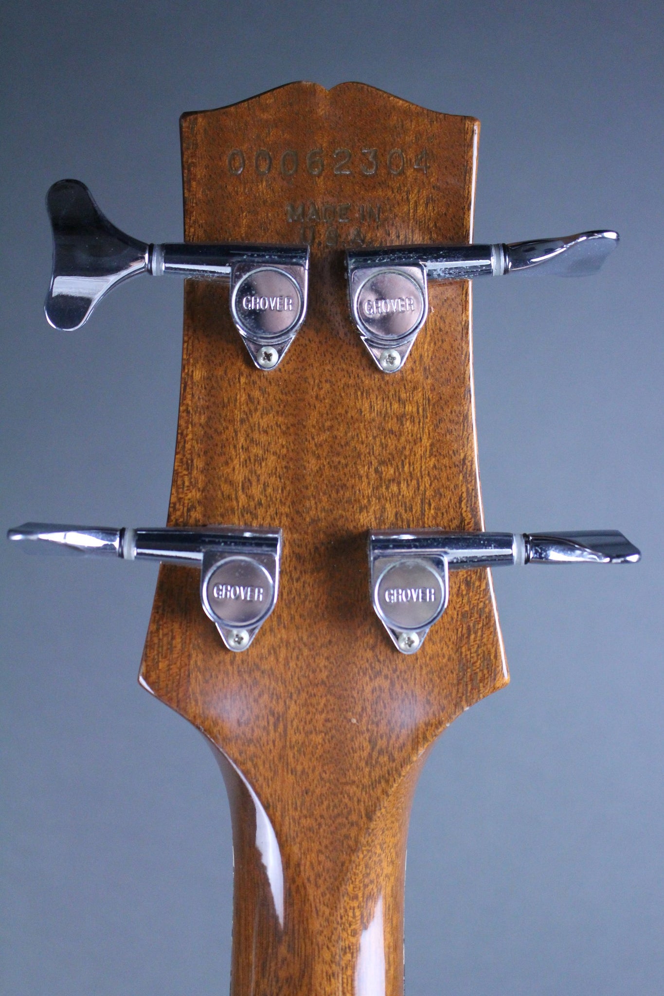 Cosmetics: This guitar is in good condition. It has light surface scratches on the top and back of the body. The back of the neck is clean with some checking near the fretboard on the treble side and the frets show light wear. The bass has some buckle rash on the back near the pickup selector switch cover. Overall, this guitar plays very well and sounds fantastic.