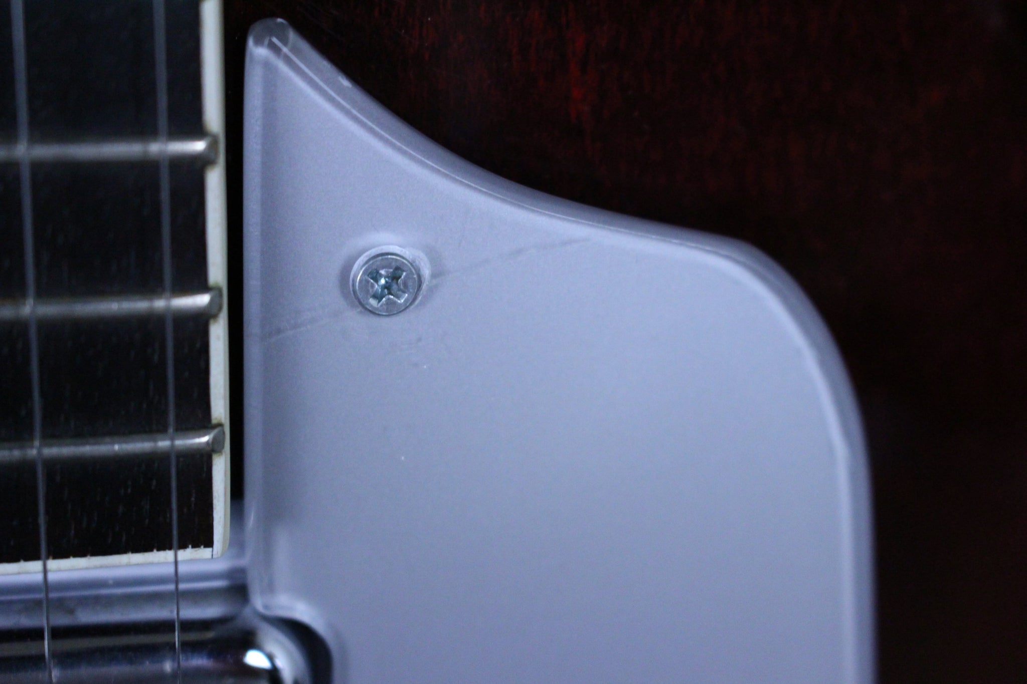 Cosmetics: This guitar is in good condition. It has light surface scratches on the top and back of the body. The back of the neck is clean, and the frets show minimal wear. Overall, this guitar plays very well and sounds fantastic. The case is in rough shape with some type of paint on the outside of the case but is functional and latches properly.