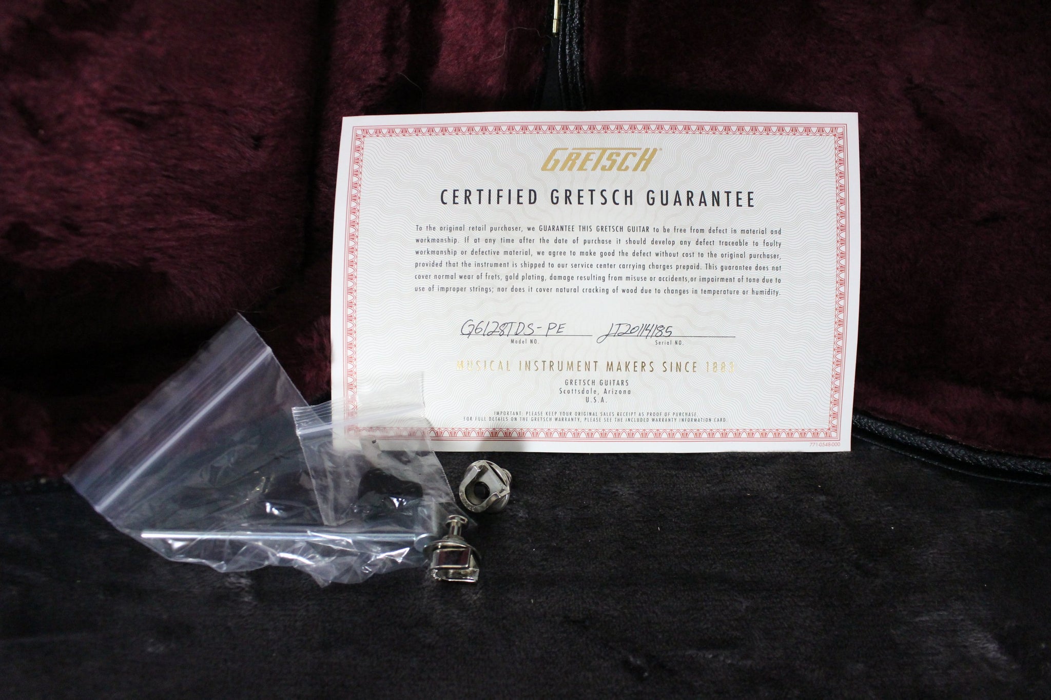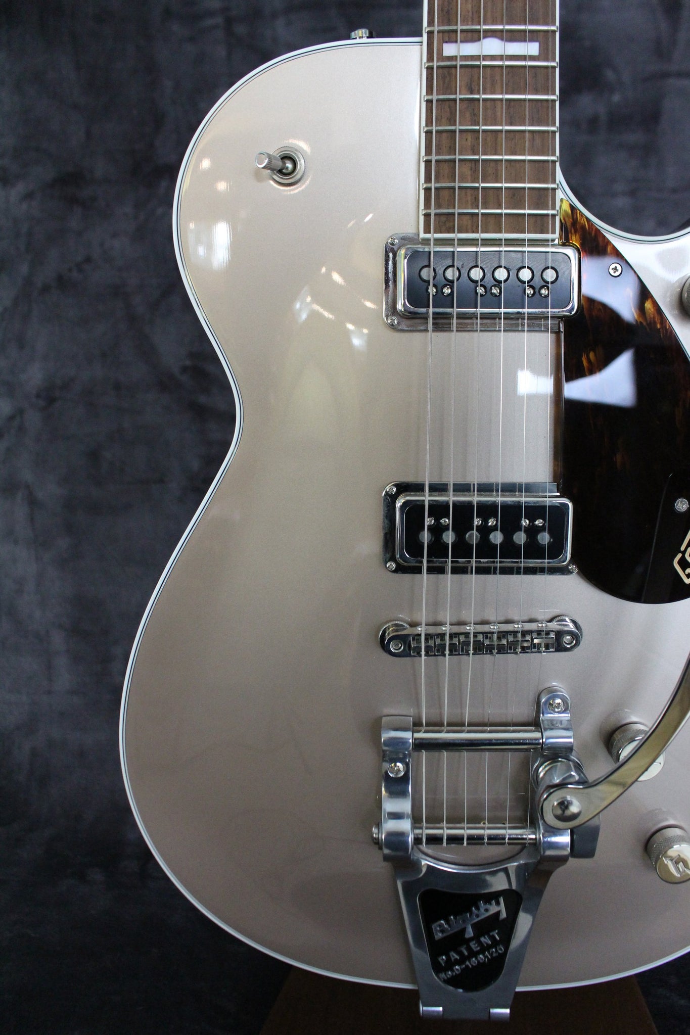 Pickups/Hardware: Gretsch Dynasonic pickups, Gotoh locking tuning keys, Anchored Adjusto-Matic bridge,Bigsby B7CP tailpiece, G-arrow knobs, Tusq nut.