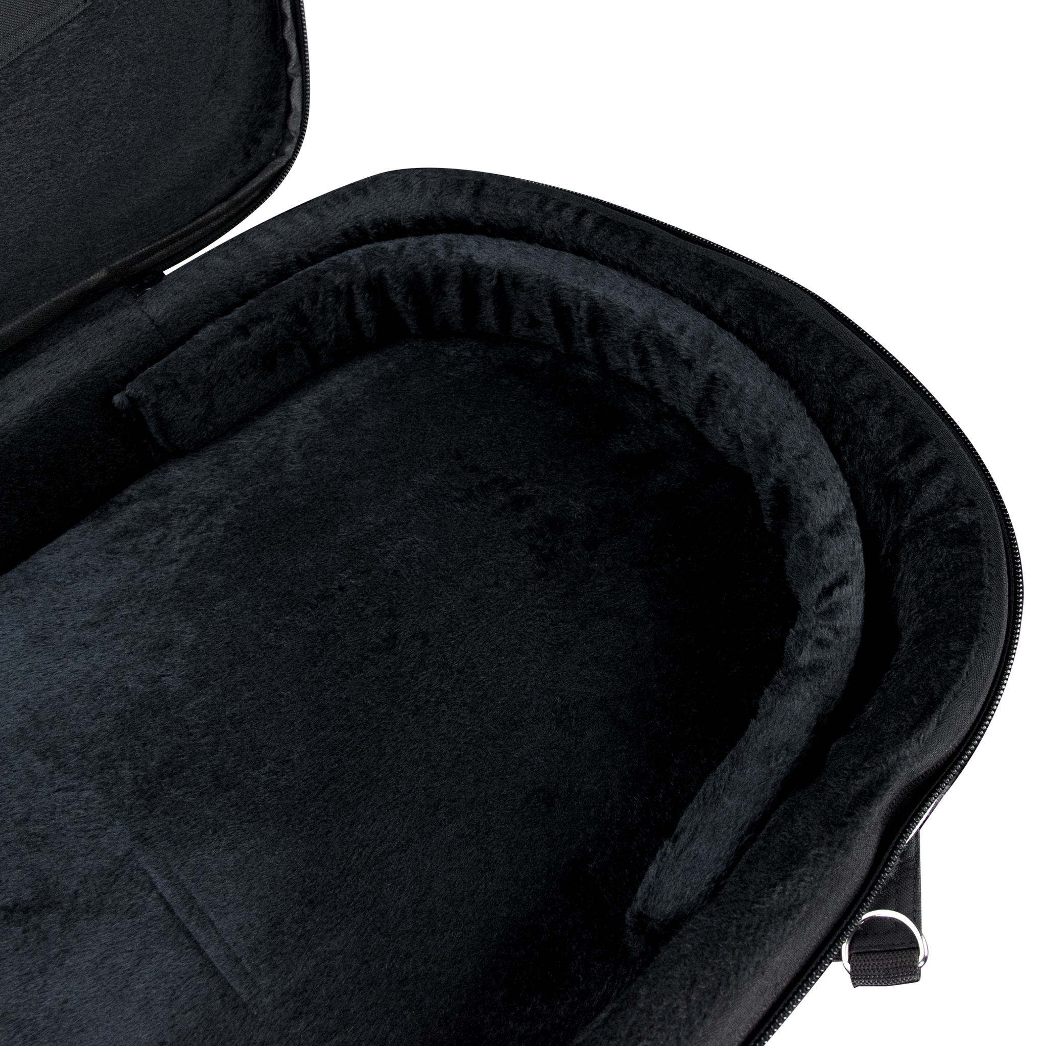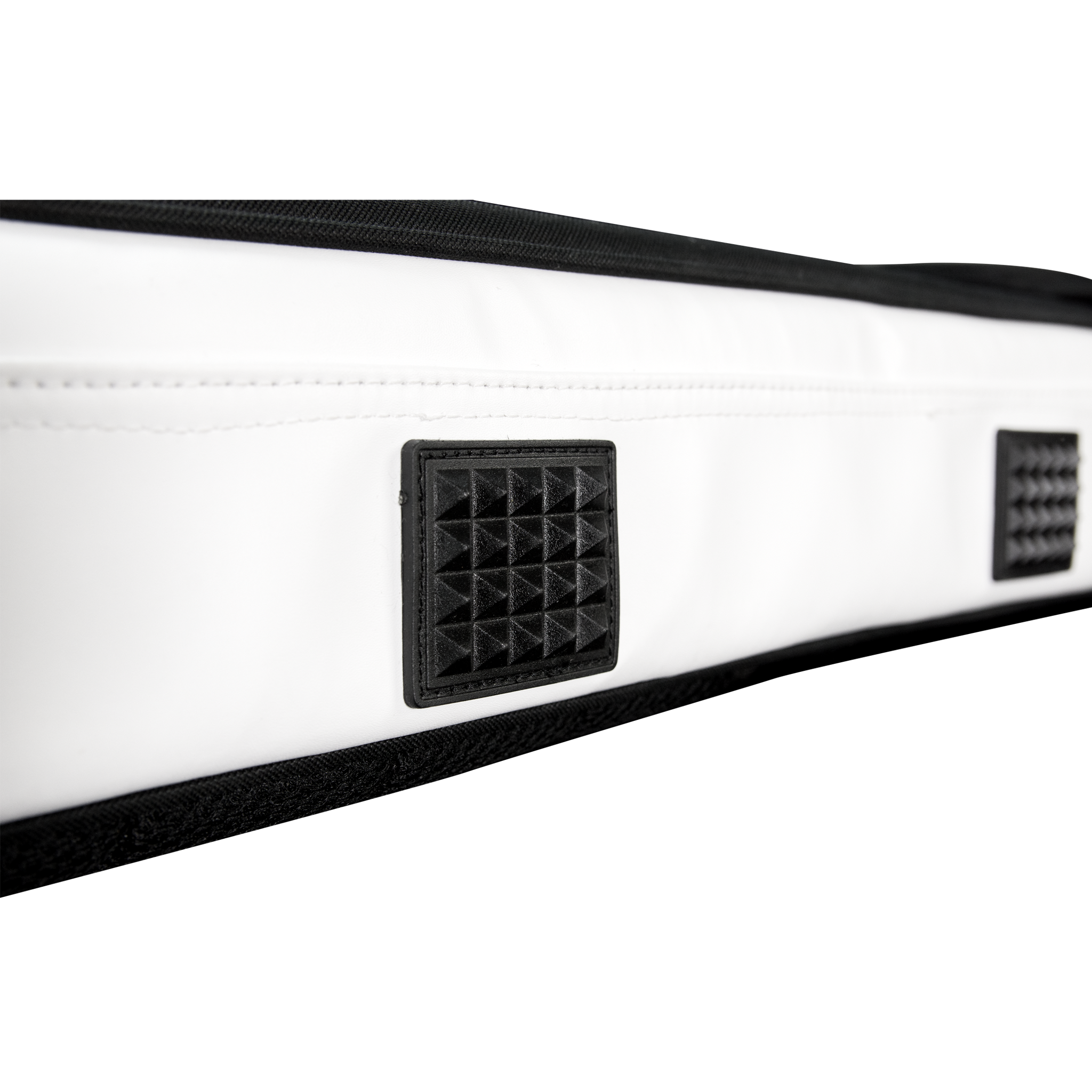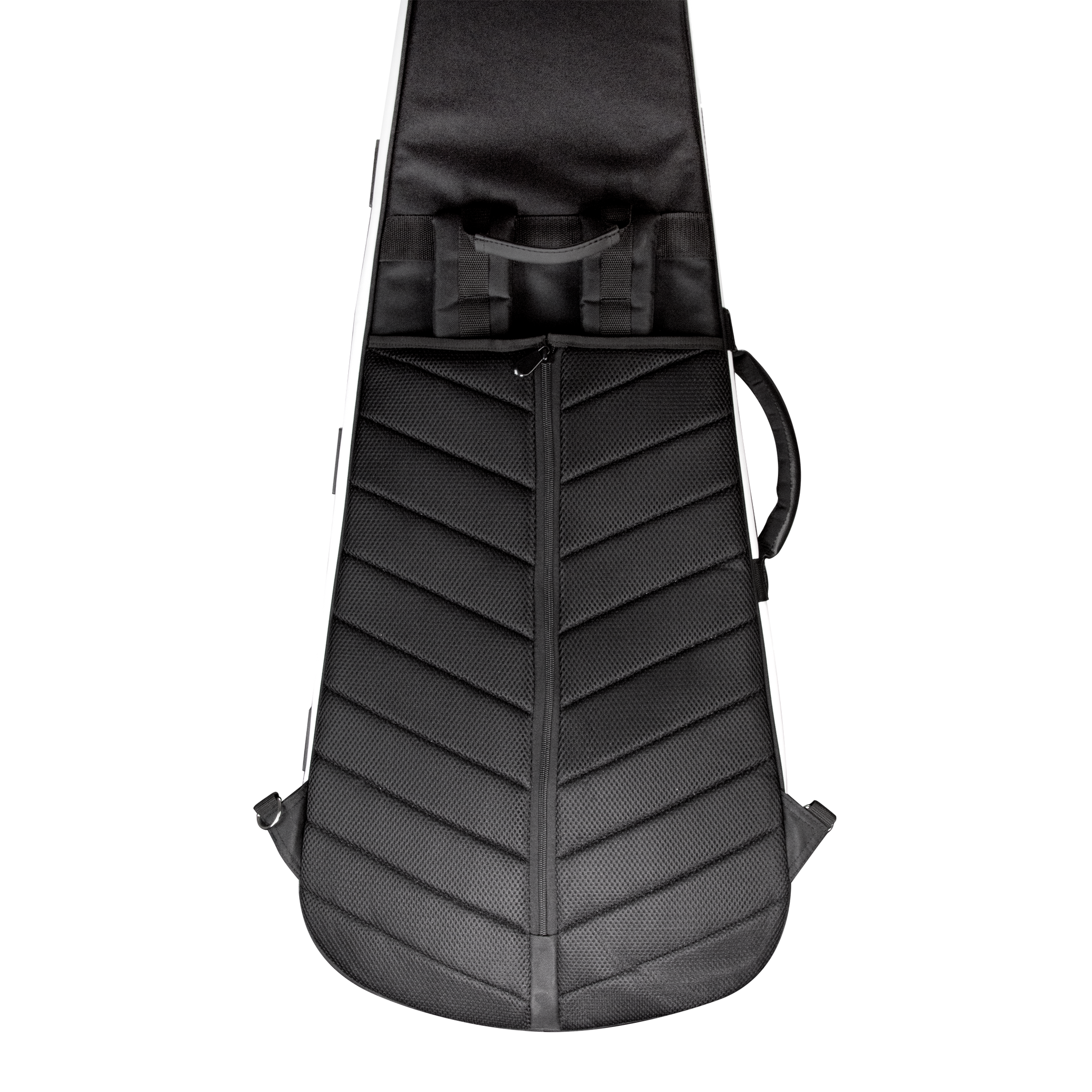 The Reverend Soft Case protects your instrument securely with durable and weather-resistant materials. The interior has thick padding, a removable neck brace, and extra padding on the bottom. The outside features plenty of storage space for your accessories with two large exterior pockets. The padded backside has a carrying handle and two shoulder straps that can be easily tucked away inside a zippable back pad when not in use.