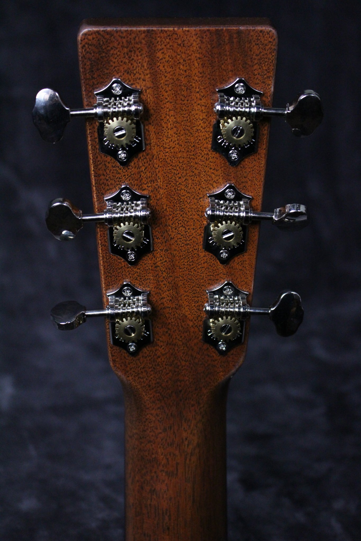 Neck: Mahogany neck, modified low oval profile, ebony fingerboard, 16” radius, 1 ¾” width at nut, 2 ⅛” width at 12th fret, bone nut, white side dots, 14 frets to the body, dovetail neck joint, satin finish on neck.