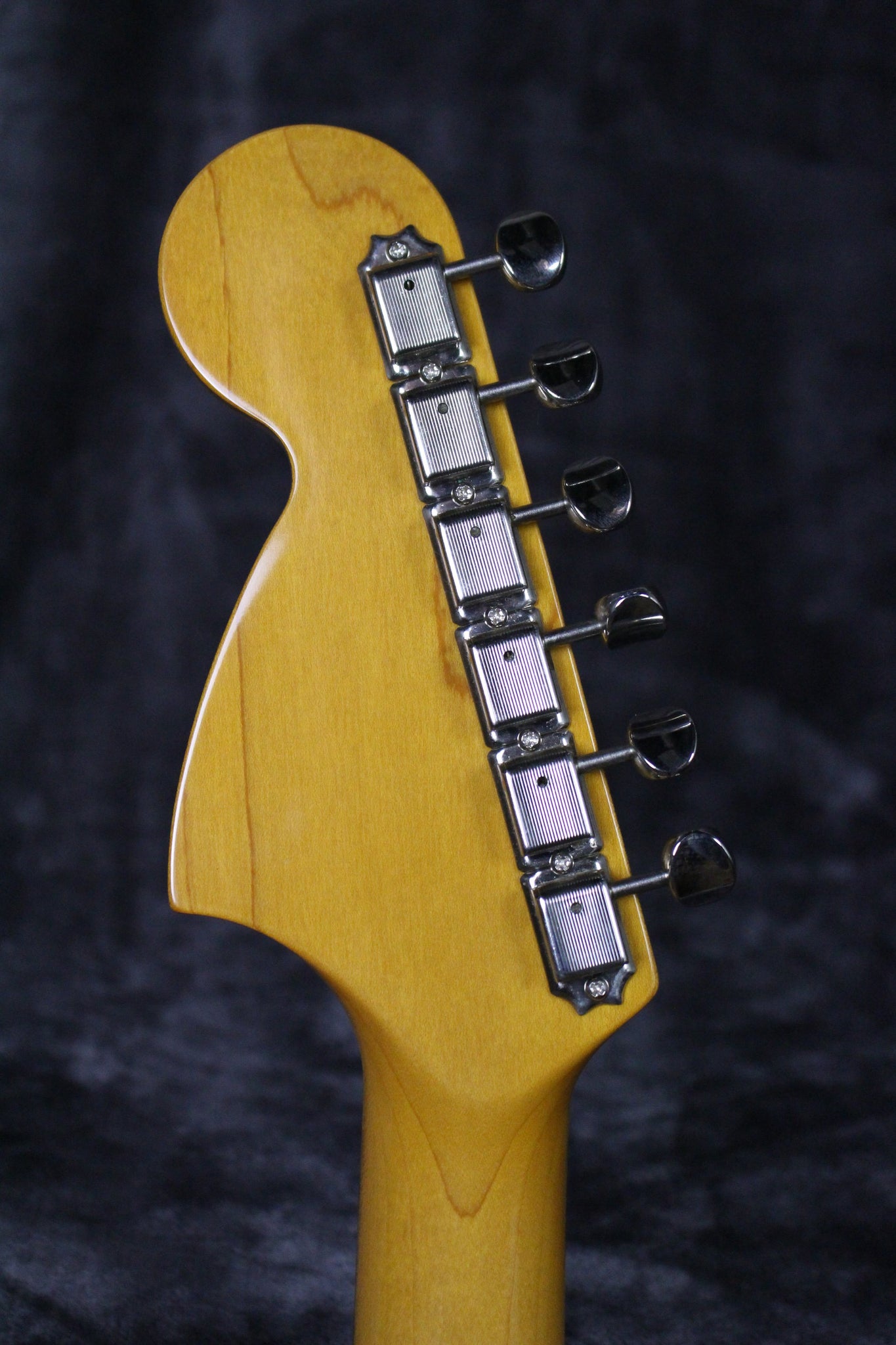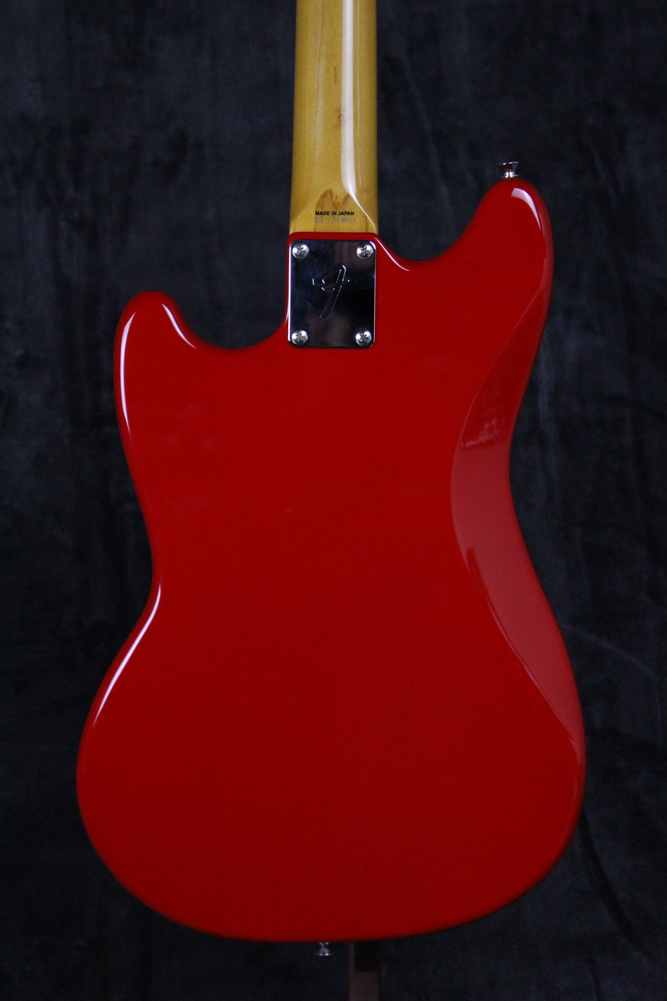 Pickups/Hardware: Two single coil Mustang pickups, Fender vintage style tuning keys, Dynamic vibrato bridge, master volume and tone knobs with on/off/on switches for each pickup, synthetic bone nut.