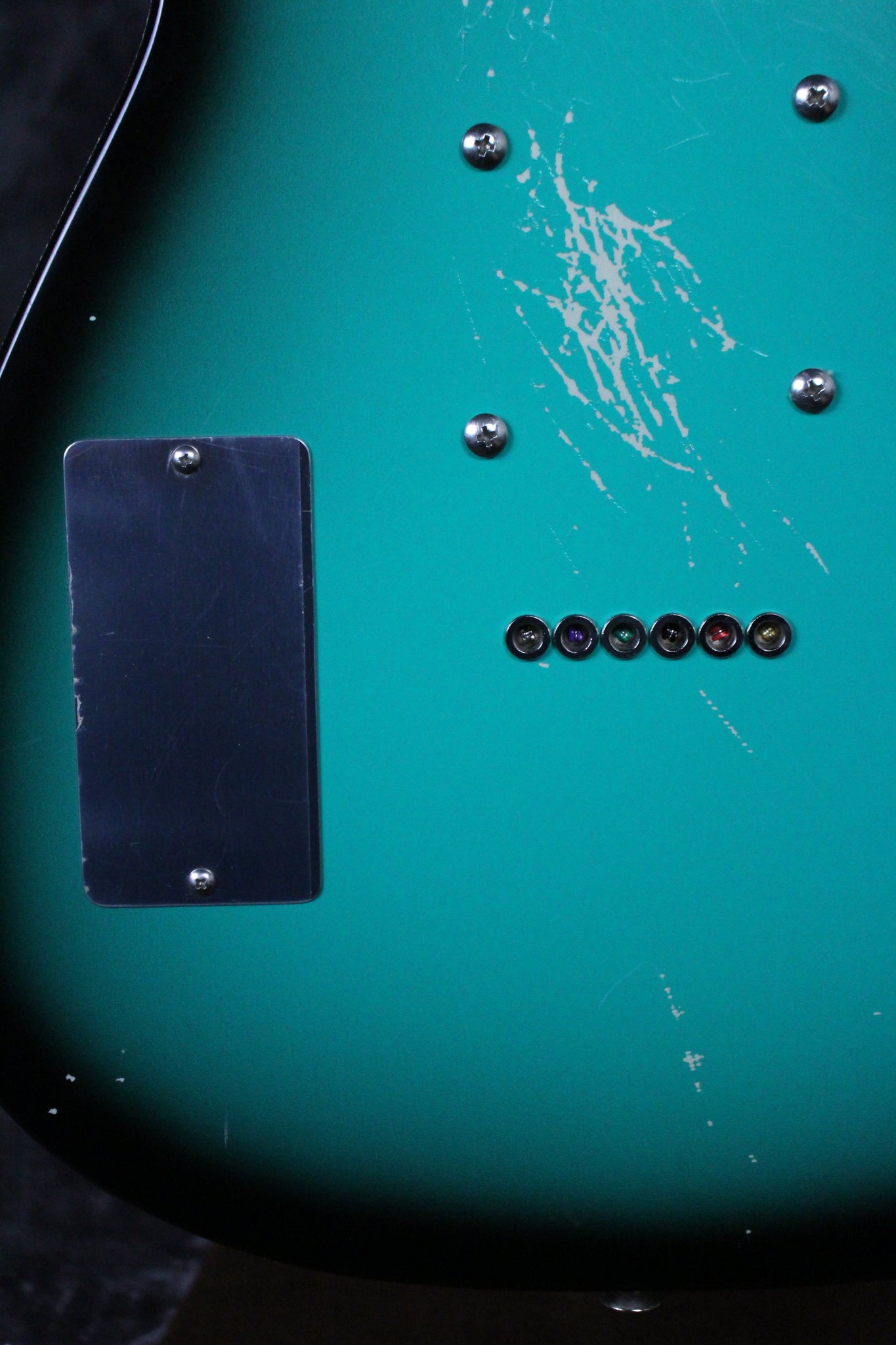 Cosmetics: This rare guitar is in good condition. It has a rare “Teal Burst” finish that we believe is the only Neptune baritone made in this finish. It has light surface scratches on the top and back of the body. The back has some buckle rash with the top having a few small dings in the finish. The back of the neck is clean, and the frets show minimal wear. Overall, this guitar plays very well and sounds fantastic.