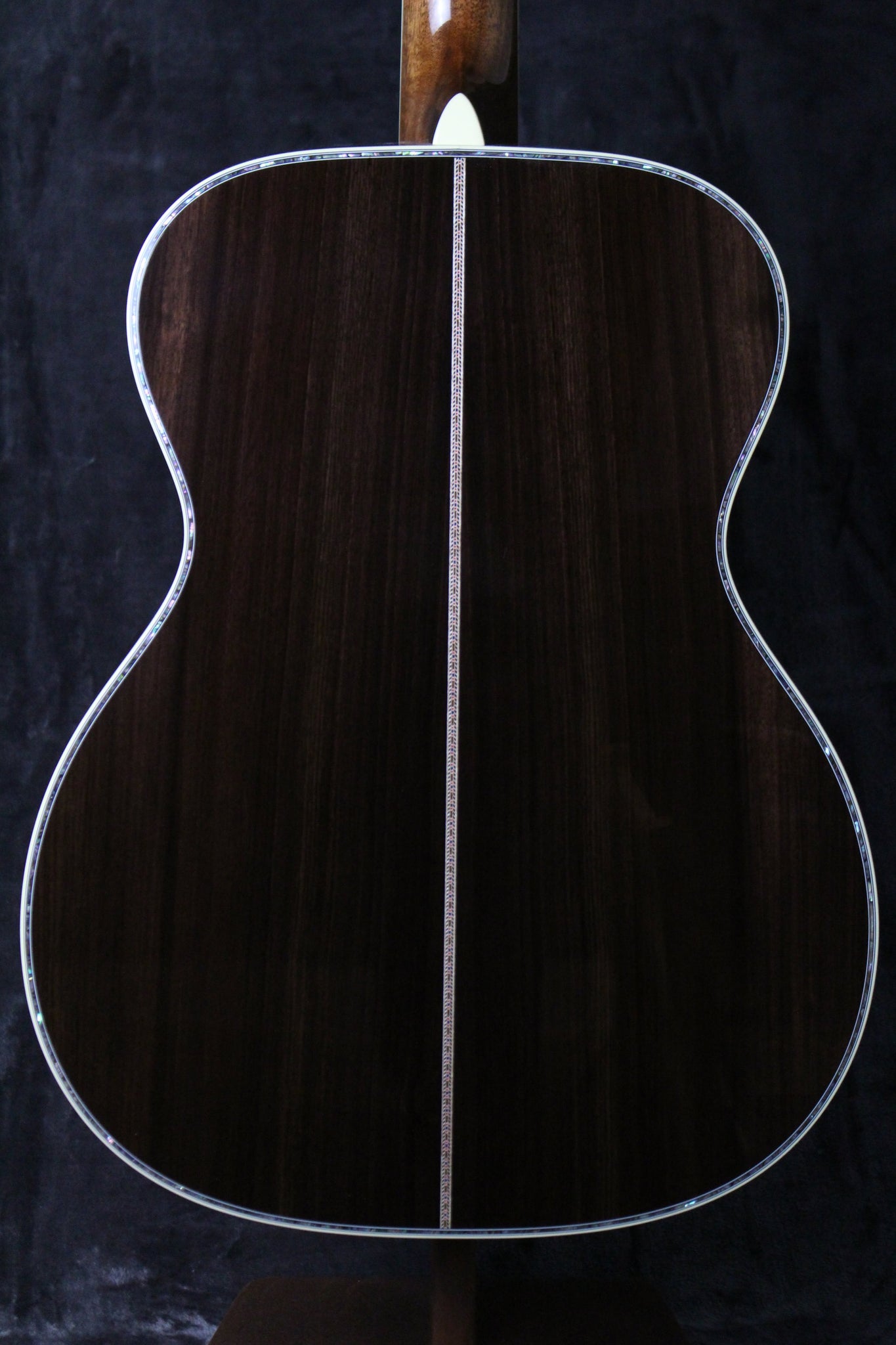 The Martin OM-45 is a pinnacle of craftsmanship in the refreshed Standard Series, combining classic appointments with modern enhancements for a truly exceptional instrument. This all-new full-gloss OM acoustic is crafted with solid East Indian rosewood back and sides and a solid spruce top, delivering a rich, resonant tone with remarkable sustain. The Sitka spruce Golden Era (GE) top bracing, as featured on the Modern Deluxe Series, offers a more vintage, breathy tone. The ebony GE modern belly bridge, with slightly smoother corners and bone bridge pins, enhances resonance and comfort, while the genuine mahogany neck with its GE modified low oval profile and longer scale length ensures a smooth, effortless feel. Playability is key with the OM-45, featuring a thinner ebony fingerboard with beveled edges and refined string spacing for maximum comfort. The pearl inlay, gold open gear tuners, and vintage-inspired long diamond neck transition offer an elegant touch, making this guitar as stunning to look at as it is to play. Wherever you’re performing and however you play, the Martin OM-45 delivers a balanced, dynamic sound with a classic, vintage vibe that’s anything but standard.