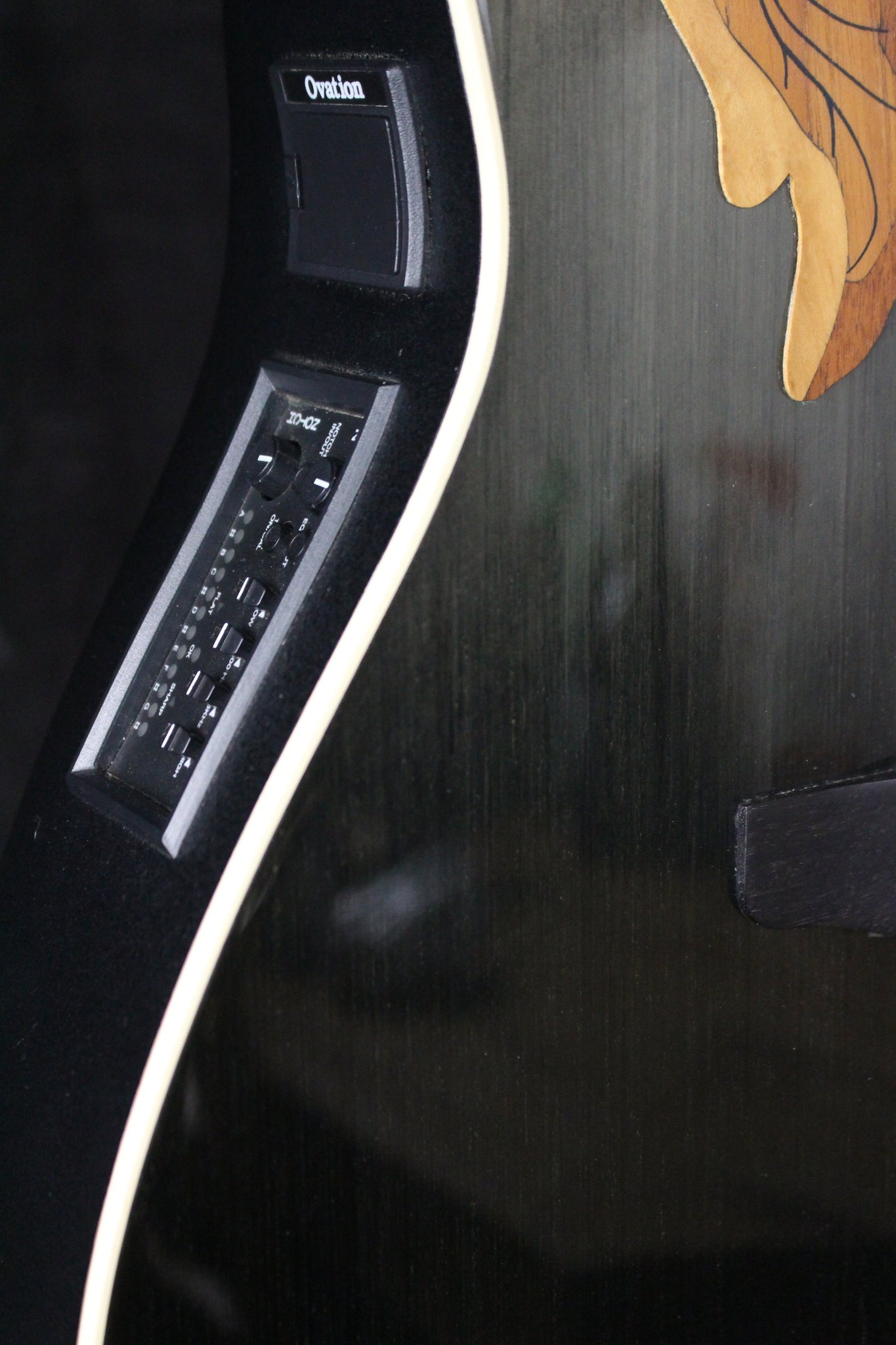 Pickups/Hardware: Stock Gold Schaller tuning keys, Ebony bridge, synthetic bone nut, stock Ovation electronics system.
