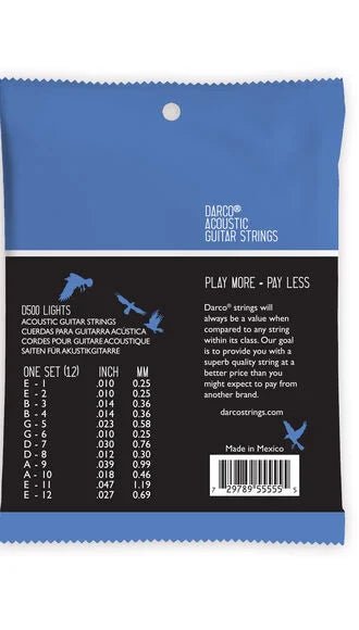 The Darco line of acoustic strings promises quality, tone, and value in every pack. They are designed for the pros and priced for the working musician so every guitar player can afford to change their strings as often as needed to keep their guitar sounding new all the time. Darco acoustic strings are meticulously constructed using a tin-plated steel core wire and high quality wrap wire. Darco offers guitar players that pre-gig-peace-of-mind or heading-to-the-studio fresh set string change. Play more. Pay Less.