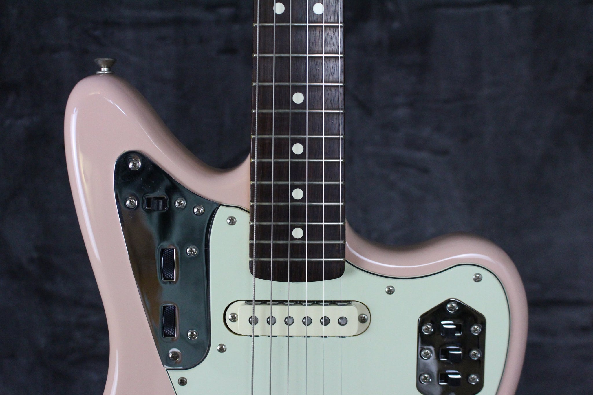 Pickups/Hardware: Original single-coil Jaguar pickups, Fender vintage style tuning keys, six-saddle bridge with factory Fender mute, volume and tone knobs with “lead” and “rhythm” circuit, bone nut.