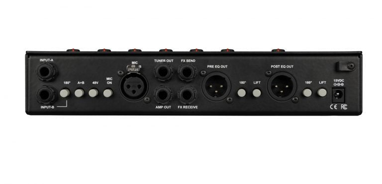 The PZ-Pro is a two channel instrument preamp, switcher, and performance control station designed for stage musicians who are serious about their tone and like being in the driver’s seat. Dual input channels allow you to switch between two sources or blend them together, with full control over the sound of each instrument, and the ability to bring effects pedals and a signal booster into the mix with a single footswitch. Each channel on the PZ-Pro has its own semi-parametric equalizer section and input level, along with individual filter controls to reduce feedback on stage. Channel-B also features a microphone input to allow any dynamic or condenser microphone to be used, including clip-on instrument mics or even vocal microphones. An FX Loop with a wet/dry knob provides the ability to blend in as much or as little pedal effects as desired, with a footswitch to bring them in and out of the signal chain at a moment’s notice. Finally, once your tone is completely dialed-in, balanced XLR direct outs feed the PA system or a recording interface, with both Pre-EQ and Post-EQ outputs available.