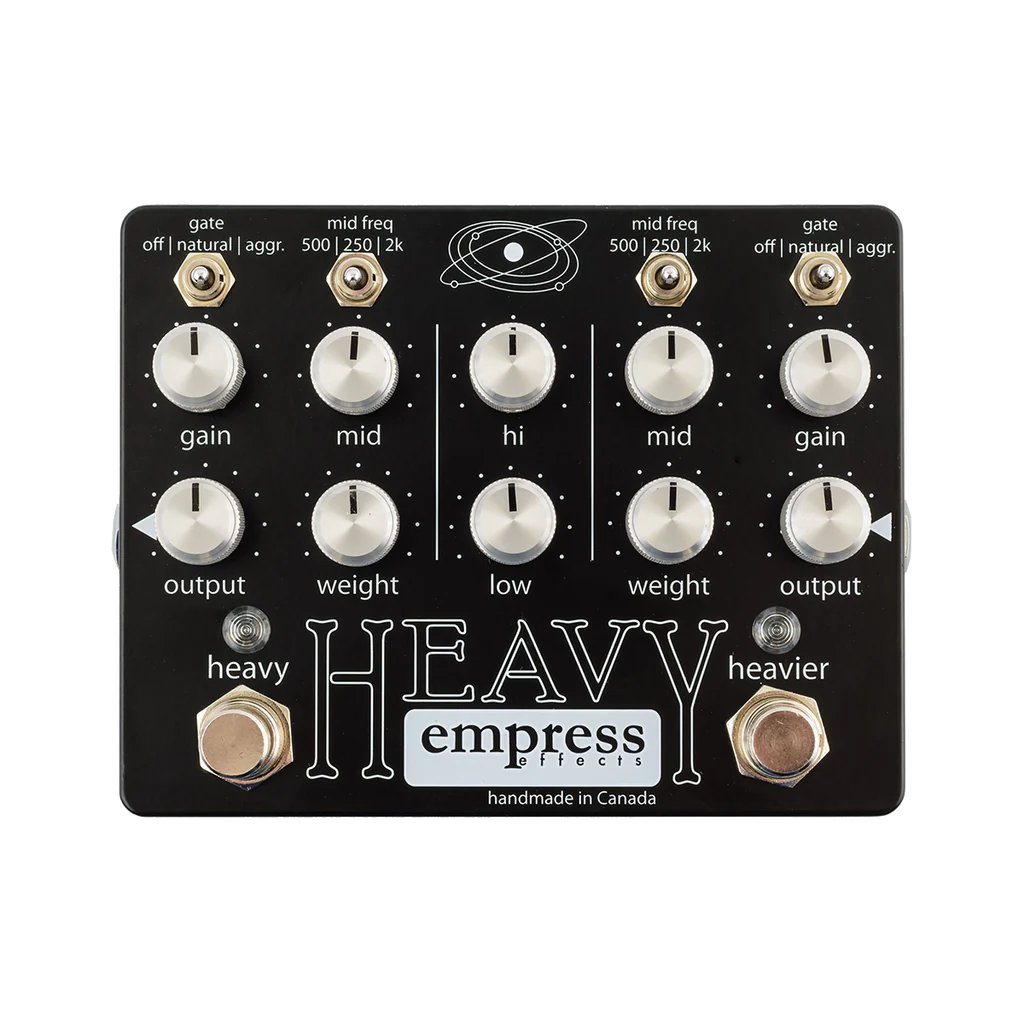 In the words of Empress Effects:In this aptly named box you'll find a huge range of killer high gain tones. From crisp, mid-driven 80's metal, to scooped, modern down-tuned brutality, this little box of sonic mayhem does it all. The two independent channels can be voiced similarly so that one channel can be used as a solo boost, or they can be voiced entirely differently by using the mid range control in conjunction with the 3 position mid frequency select switch. Add in separate weight controls to shape the low end response of each channel, and a global hi/low eq section that allows you to fine tune your particular amp and cab combination, and you've got a serious tool to create a supremely heavy sounding rig.