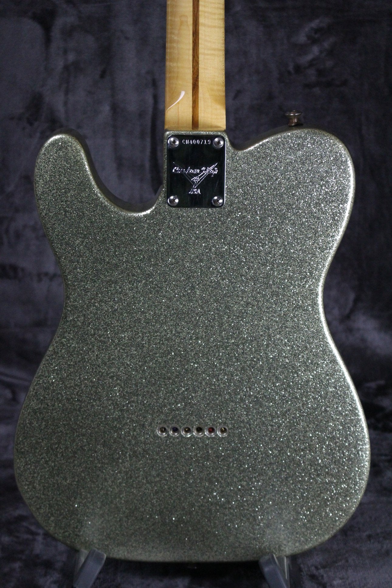 Summary: This Custom Classic Telecaster has all the features players have come to love plus a few modern upgrades, like a premium light Poplar body with a Silver Sparkle finish, a ‘60s "C" shape lightly figured maple neck and fingerboard, and 21 frets. It comes equipped with two Texas Special Telecaster pickups and a 3-position blade switch. This Telecaster ships in the original hard-shell case with the certificate of authenticity.