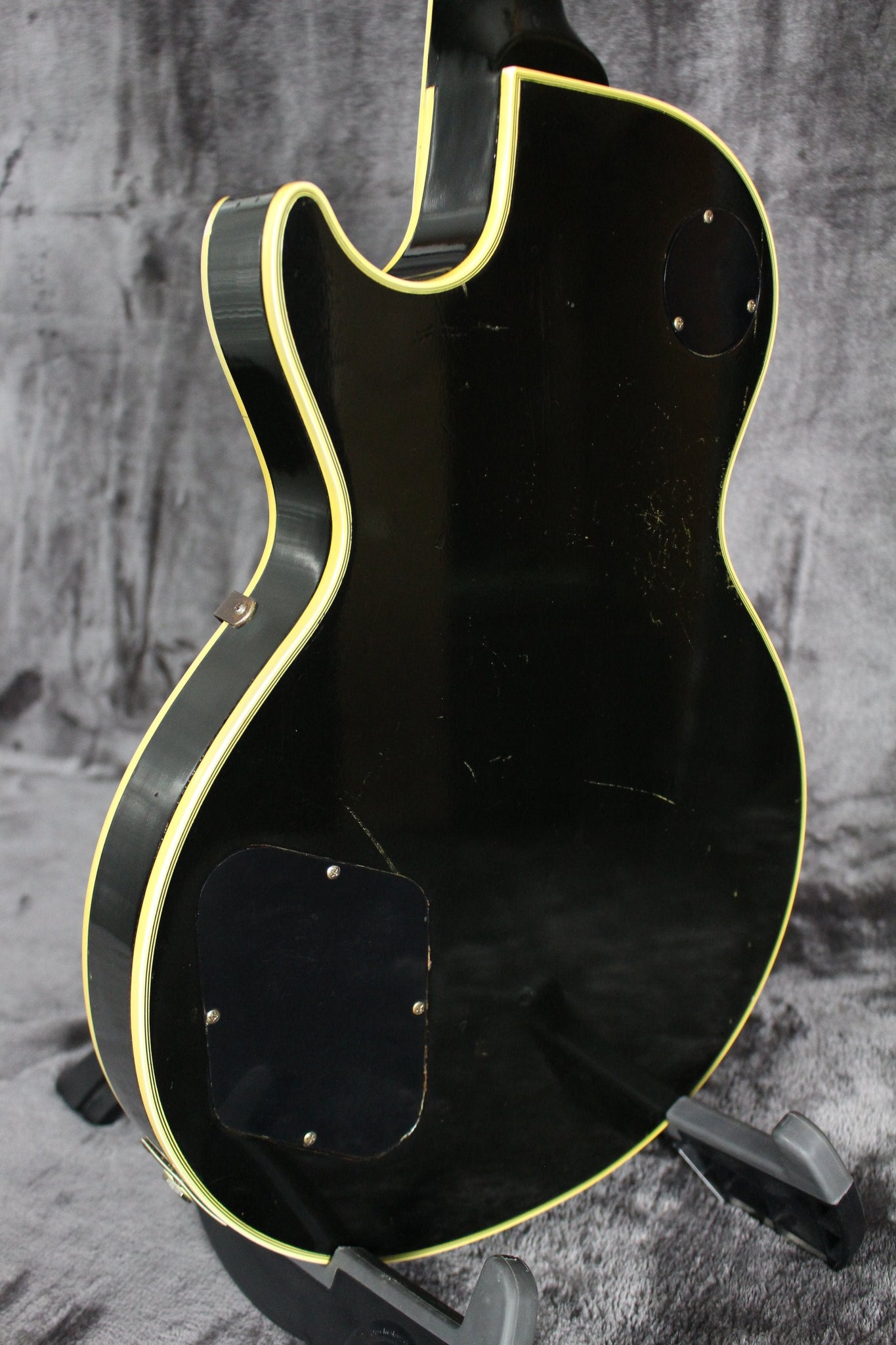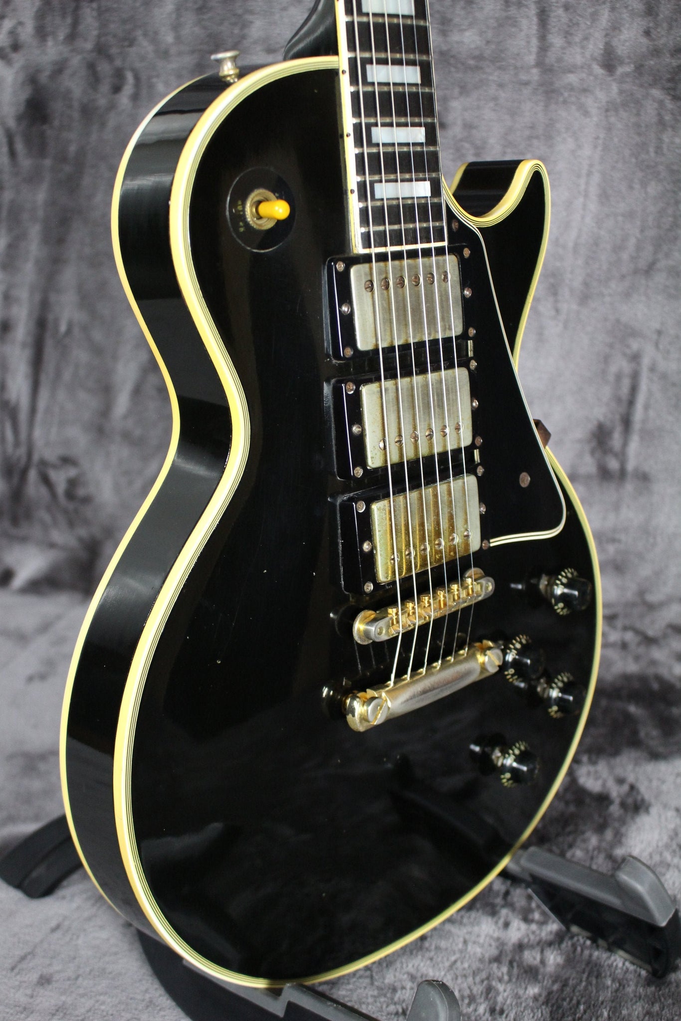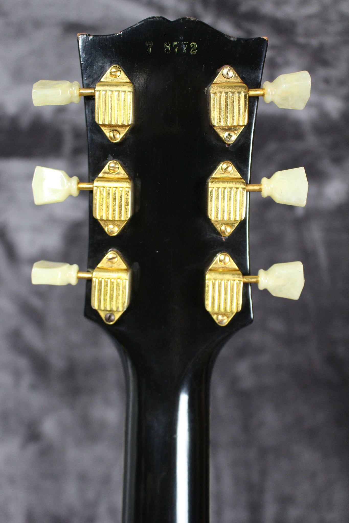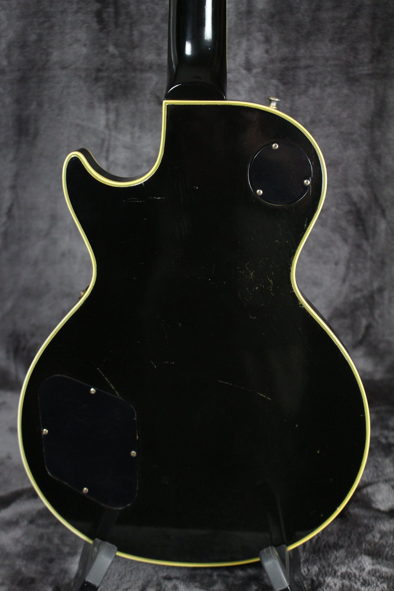 Cosmetics: This 1957 Les Paul Custom is in excellent condition. It has light surface scratches and small indentations. The back of the body has some buckle rash and some other scuffs. The hardware has tarnished and is losing its gold in places. There are two screws that have been changed on the tuning keys on the back of the headstock. “Rhythm” and “Treble” have started to wear off on the pickup selector ring. Under a black light you can see where the last owner had three stickers with his initials right below the tailpiece. These stickers have since been removed. This can now only be seen under a black light. Most of the fret wear is on the bottom four strings and up to about the 7th fret. The back of the neck is in great shape with light wear that includes light scuffs and small indentations. The binding on the body is in great shape and has aged beautifully. There is a scuff in the binding on the bottom of the cutaway. (See Photos Please)
