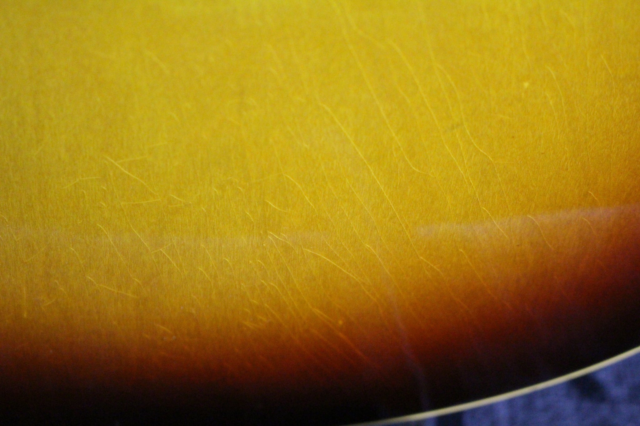 Body: Maple finished in a nitrocellulose Sunburst, f-holes, double cutaway.