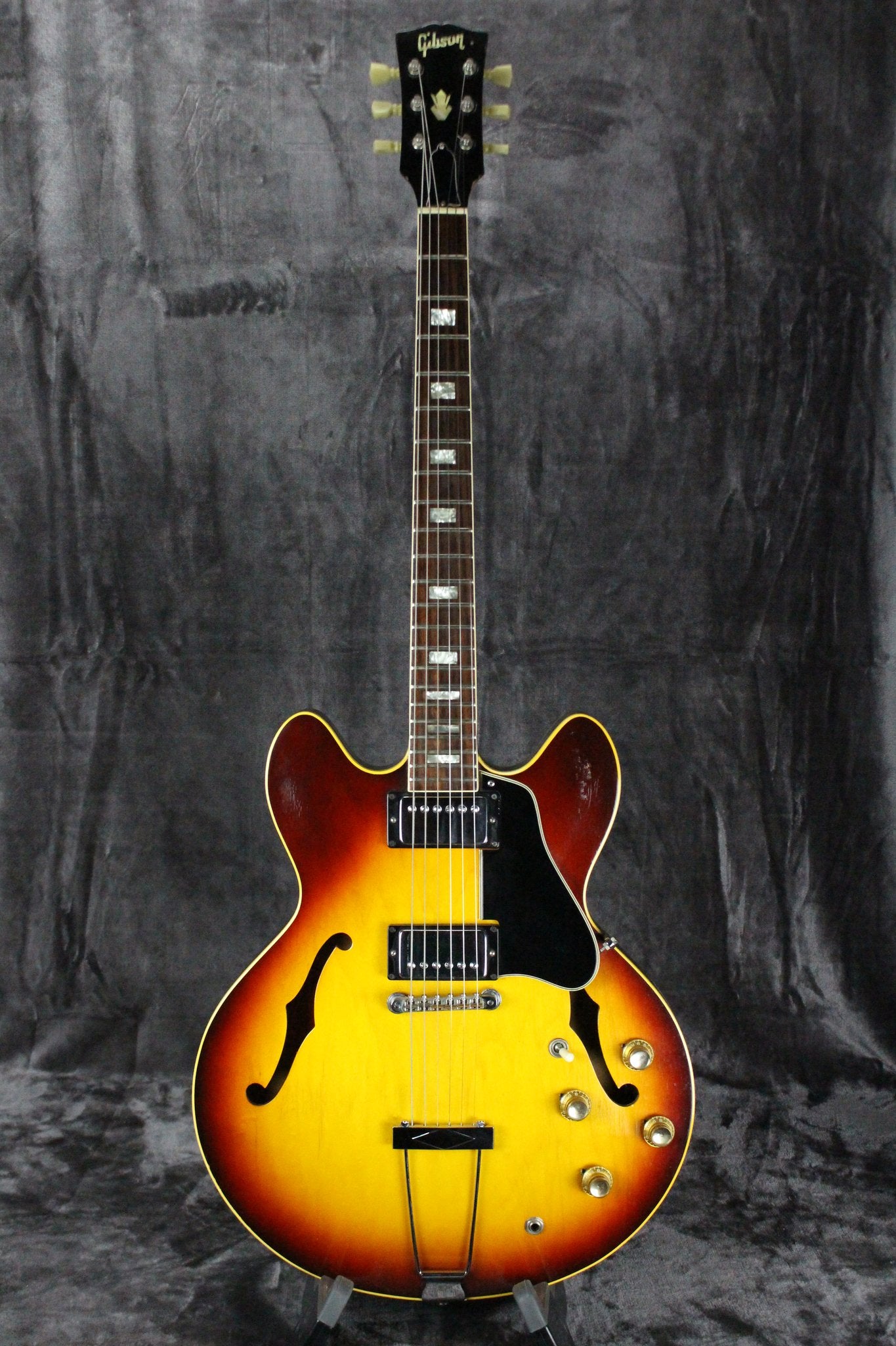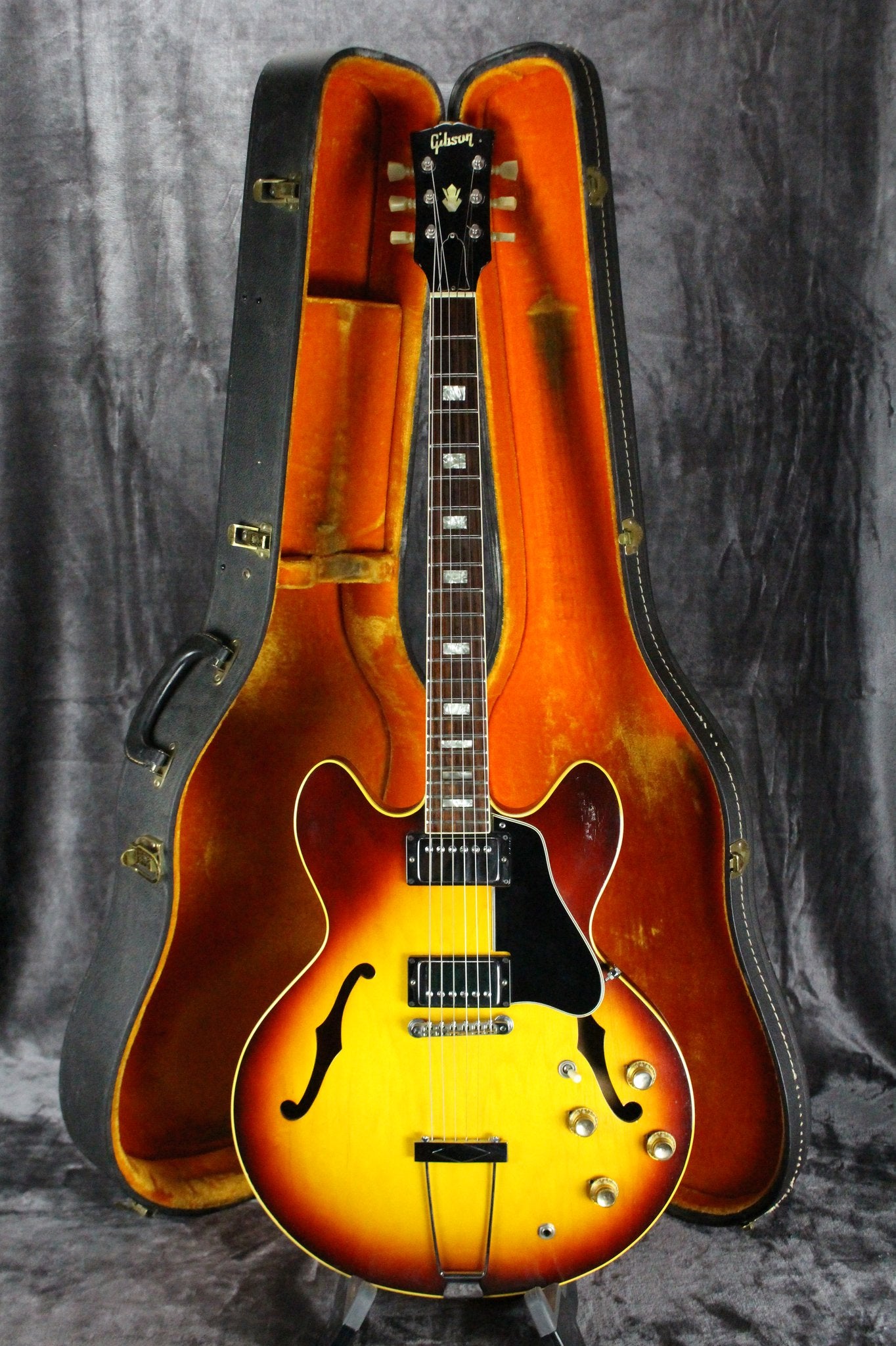 Summary: Like the Les Paul, the ES-335 stands as one of Gibson's all-time most iconic models. The ES-335 is a semi-hollow body guitar which means that it has a solid block of wood running through its center with hollow wings on either side. This construction style maintains the open tone of a hollow body while helping to reduce feedback. The ES-335 was introduced in 1958 and has remained in production in various forms ever since. This ES-335 has the original trapeze tailpiece. The original Patent Number pickups sound great and it plays very well.