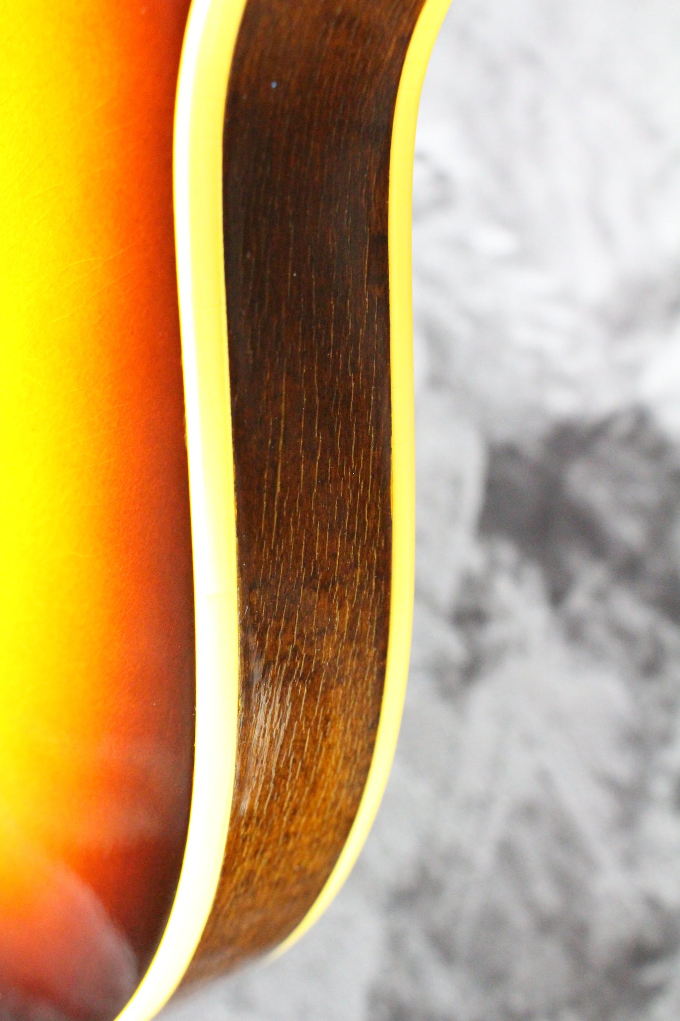 Cosmetics: This guitar is in great shape for a guitar from the late 1960’s. It has a few dings and dents here and there (See Photos Please). The finish has aged very well and has plenty of checking. The finish on the back of the neck has worn down a bit around the 4th-6th fret. There are a few dings on the back of the neck. There are some very small finish blemishes on the top of the body on the bottom cutaway near the pickguard (See Photos). There is a ring around each of the tuning posts on the face of the headstock are most likely from a washer that used to be there. Overall, this guitar plays very well, sounds amazing, and is great condition.