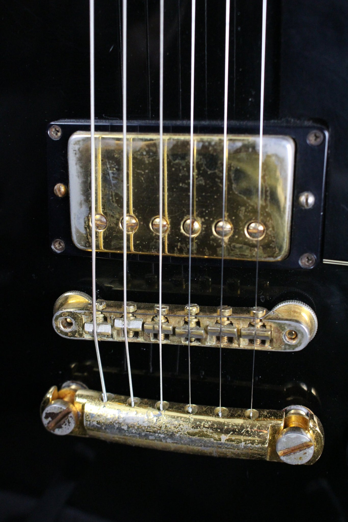 Pickups/Hardware: Two original humbuckers, waffle back gold tuning keys, 2x volume/2x tone controls/3-way pickup selector, top hat control knobs, original bridge/tailpiece.