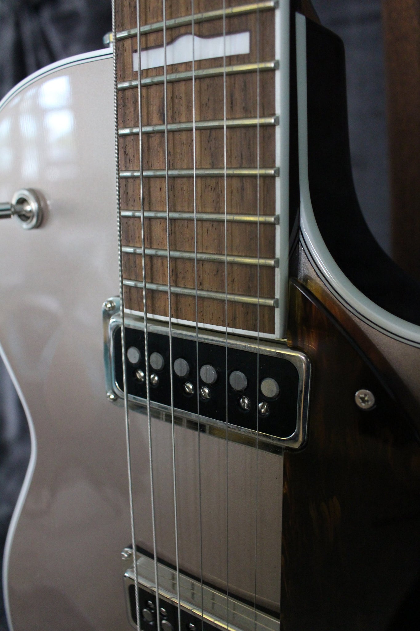 Body: Mahogany, with Maple top in Sahara Metallic finish.