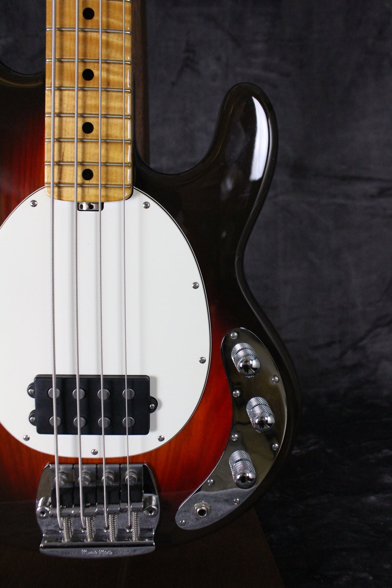 Pickups/Hardware: Stock Musicman active pickup, Schaller tuning keys, Volume and two tone knobs, 4 saddle bridge with adjustable mutes, synthetic nut.