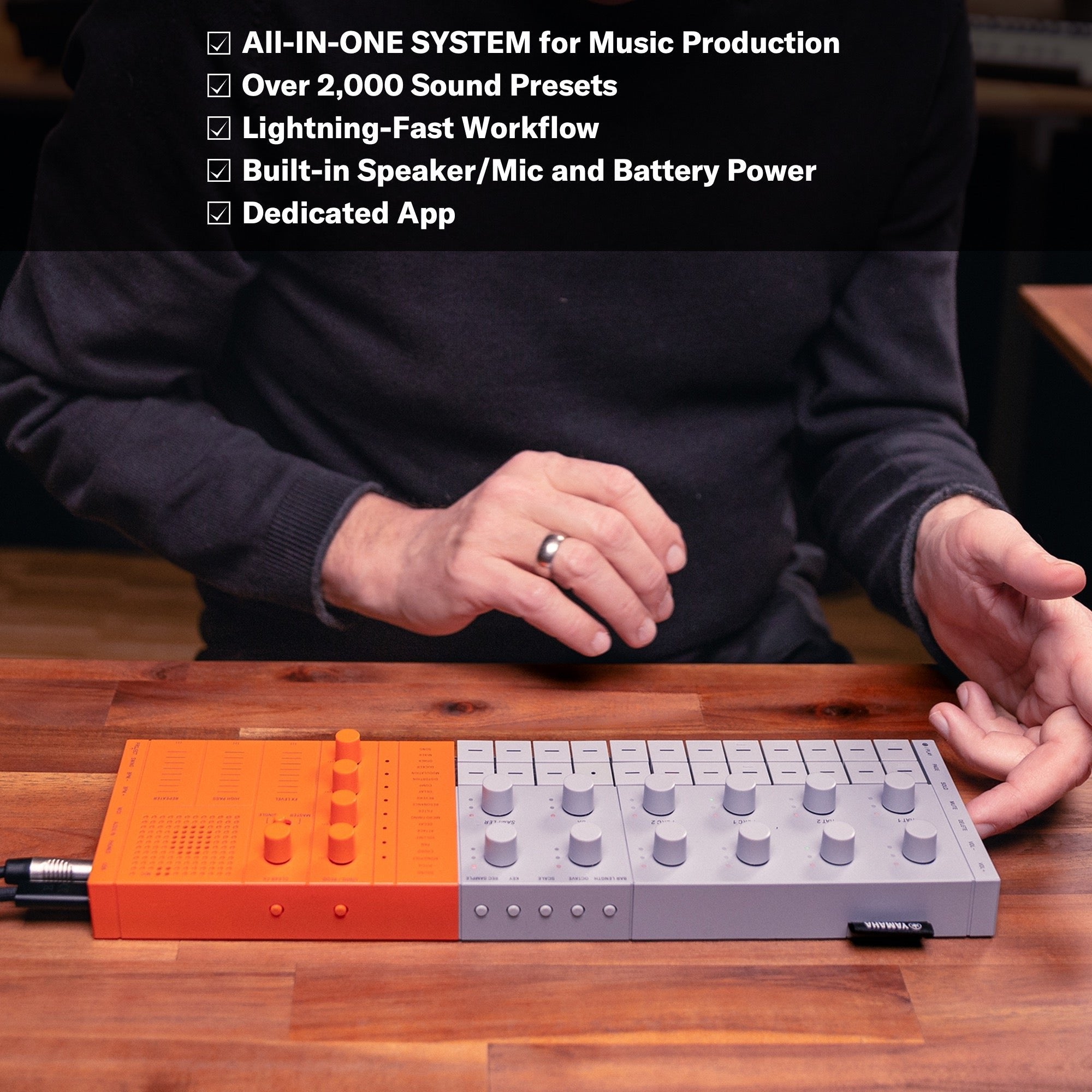 through its lightning-fast, all-in-one system that includes drums, synths, sampling, and sequencing, all packed into a compact, lightweight design. Create original music with two versatile sound engines, then refine with deep editing, custom samples and video creation using the intuitive SEQTRAK app. When you’re ready, share your sounds, collaborate with other artists, and connect with fans using its powerful performance features and video creator. SEQTRAK has everything you need. And more.