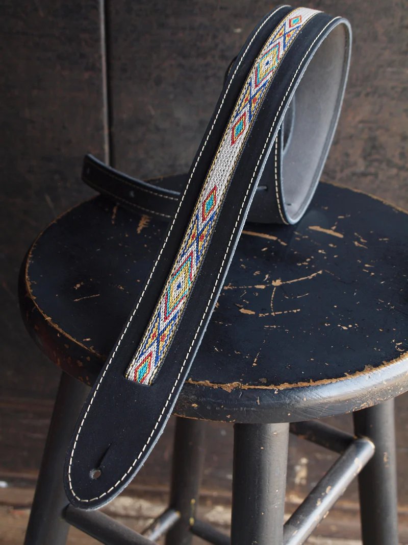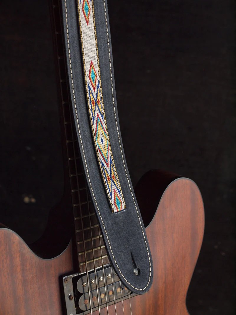 This is a brand new "The Vinny" Guitar Strap by LM Products2" wide suede top and undersideComfortable foam-core paddingSouthwestern braiding accentA personal favorite of the LM craftsmenMade In USA