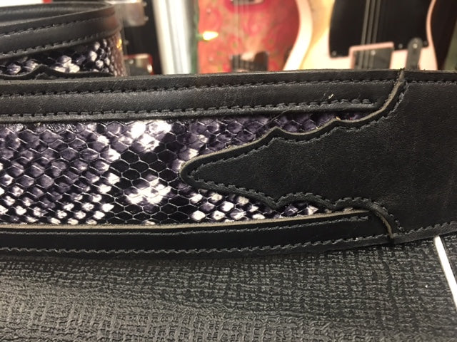 LM Products Guitar Strap Framed Leather Snake Black FLS-BK *Free Shipping in the USA*