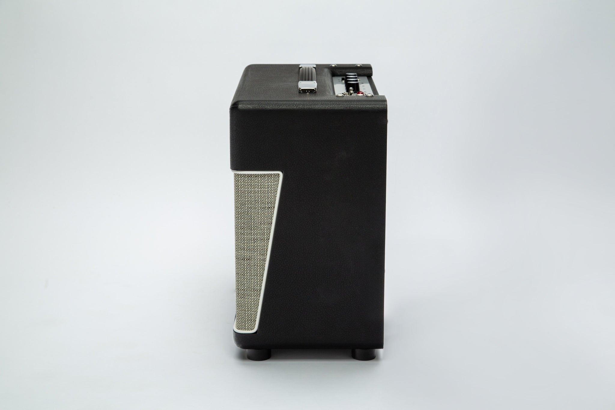 The Baby M-80 Amplifier is designed to give you a portable and powerful amplifier in a unique and authentic package. The amp is built around a 6AQ5 NOS Pentode tube. 12 watts of full bodied clean power is obtained. The 12AX7 front end operates in low or high gain modes, delivering robust clean and chewy, saturated overdrive. The master volume delivers classic British crunch at any volume, and the effects loop allows you to connect your favorite pedals with ease.
