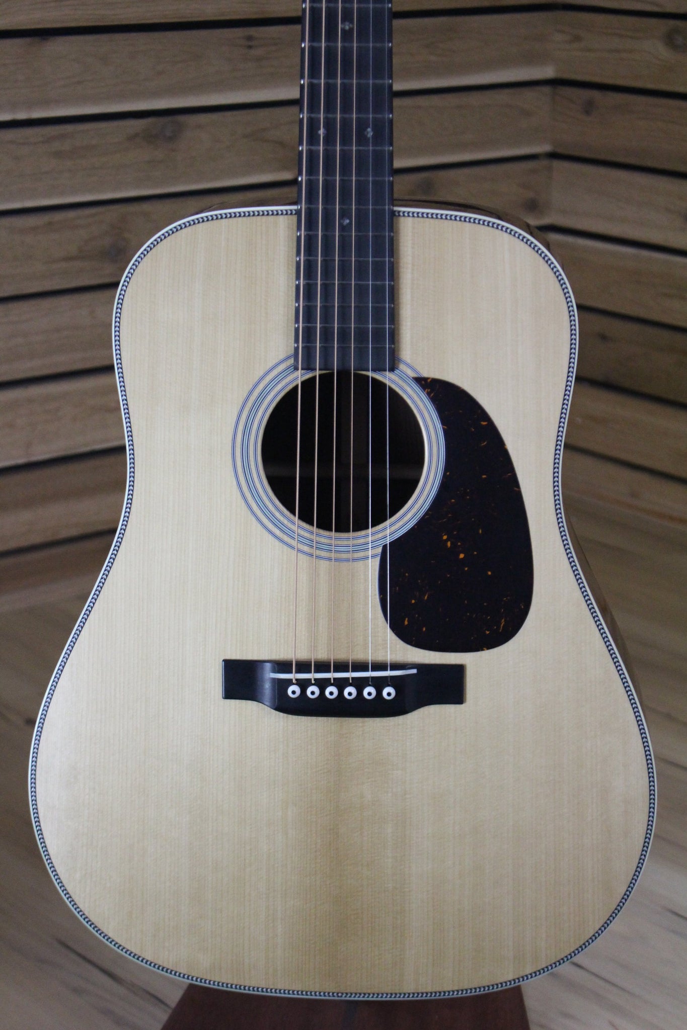 Perhaps the most revered vintage D-28s are the ones created in 1937 with forward-shifted hand-scalloped X-bracing, an Adirondack spruce top, and a 1 3/4" neck width. This model is an updated version made with Guatemalan rosewood back and sides, and it includes some subtle spec refinements to make it even more faithful to the original. One of the major updates is a more accurate body profile based on dreadnoughts from the 1930s and 40s. Martin’s VINTAGE TONE SYSTEM® (VTS) is employed to age the top and braces, which captures the tone from the 1930s era. Martin’s craftspeople can recreate the pleasing visual aesthetics of a vintage guitar and reproduce the particular tones previously reserved for vintage instruments.