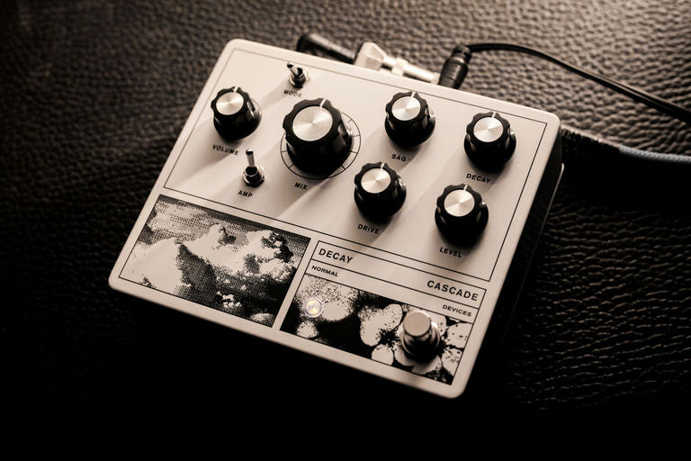 Blends reverb and cascading analog amplification stages to create multilayered textures. Inspired by the sound of running reverb into distortion but with much more blending and layering possibilities, this pedal can produce lo-fi subtlety or slabs of disintegrated noise. Or both.