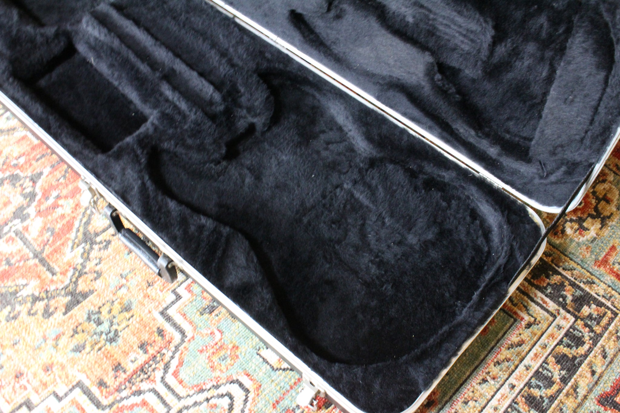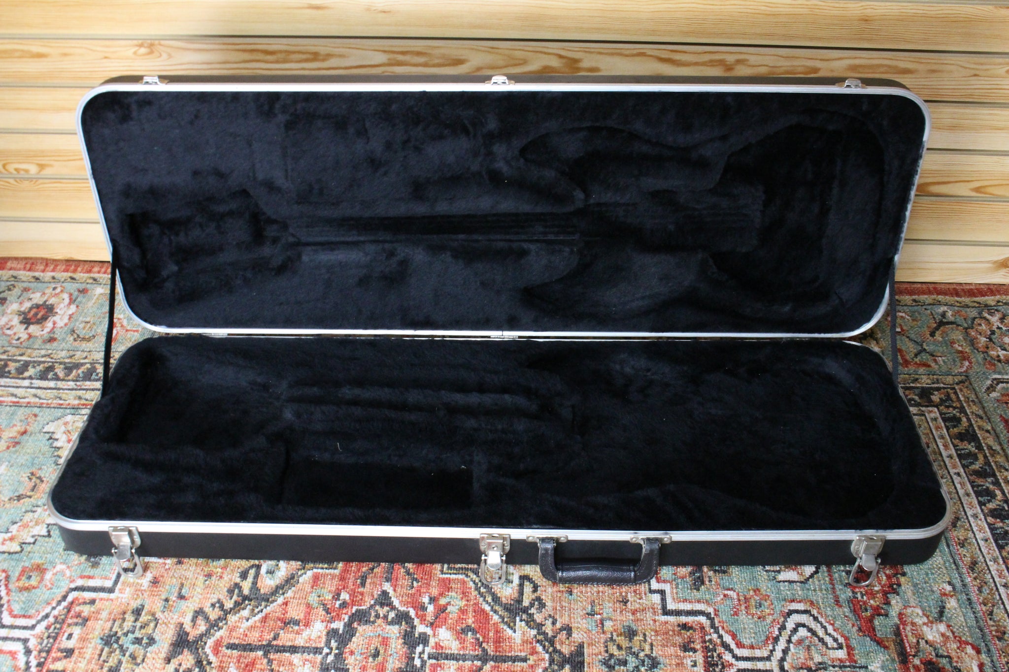 Unbranded, molded, hard shell plastic case for Fender Stratocaster or S-Style guitar.
