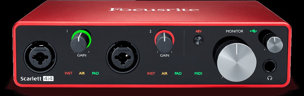 Focusrite's Scarlett 4i4 audio interface is a superb recording front end for musicians and producers who need just a little bit more connectivity, letting you record up to four mono sources or two stereo line sources such as synths or drum machines. Two award-winning Focusrite mic/instrument preamps are onboard, with their convenient combo inputs right on the front panel where you need them, while the back panel hosts two balanced line inputs and four balanced line outputs, plus MIDI I/O. The third-generation Focusrite Scarlett 4i4 advances the state-of-the-art in USB audio interfaces with two upgraded Scarlett mic preamps, high-performance 24-bit/192kHz AD/DA converters, optimized preamp gain structure, vanishingly low latency, and instrument inputs that handle scorching hot pickups. The mic preamps now feature Focusrite’s acclaimed Air mode that provides the coveted Air effect that models the company's legendary ISA console transformer to give your voice and instrument recordings a brighter, more open sound. The Focusrite Scarlett 4i4 is an ideal foundation for your home or mobile studio. Fire up the included software and start making great-sounding music today with the Focusrite Scarlett 4i4 USB audio interface!