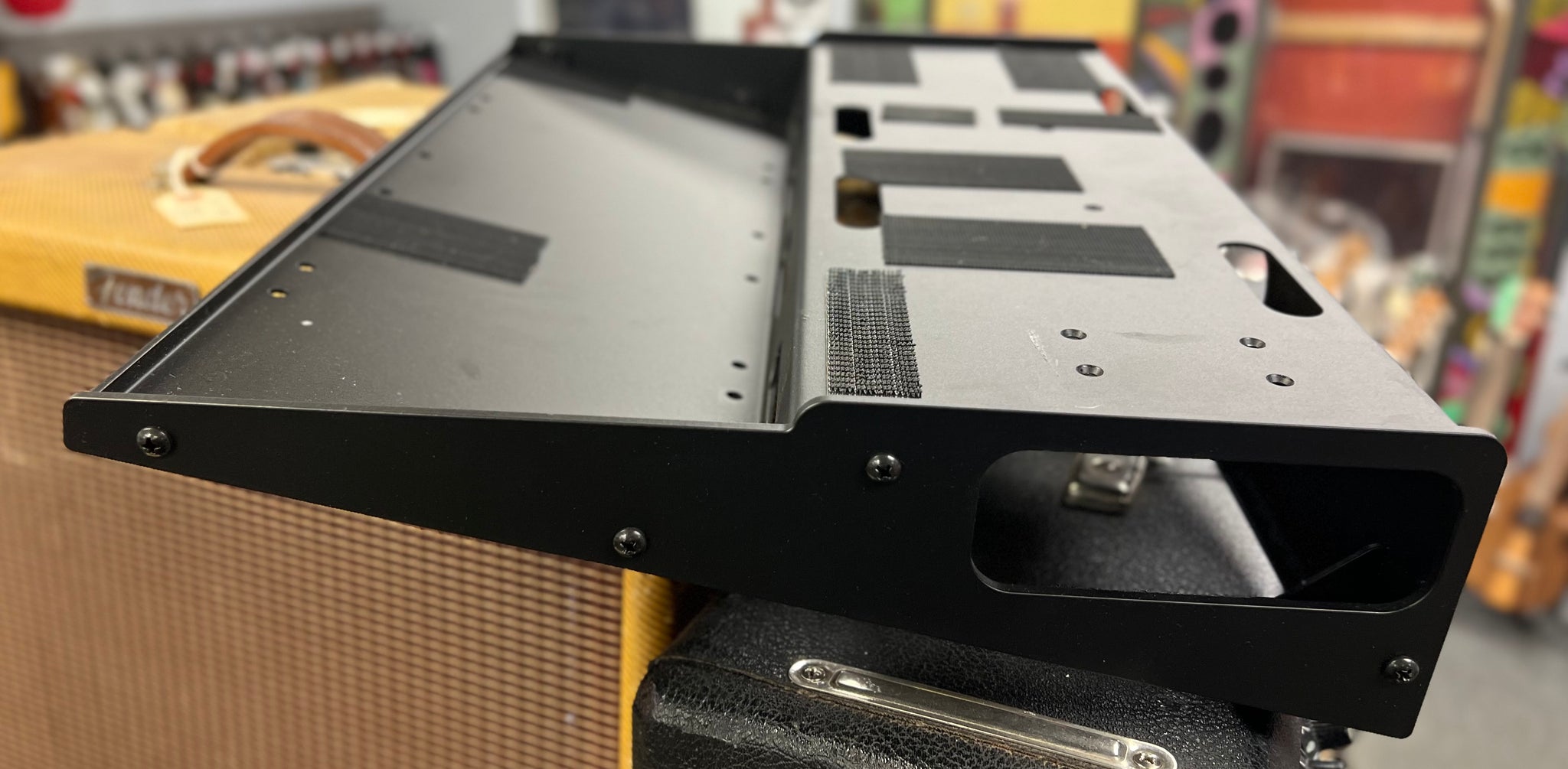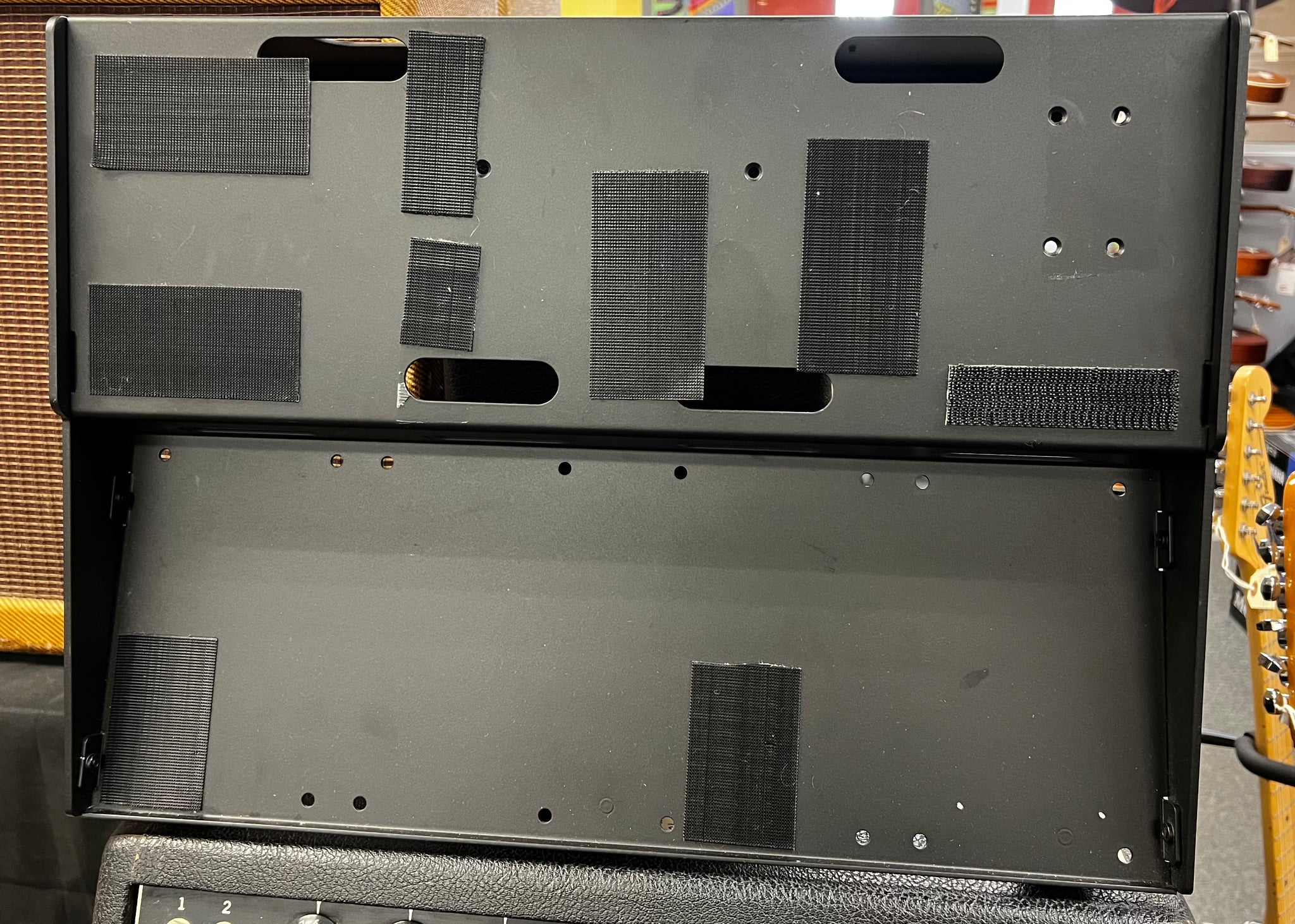 While most pedal boards have either a flat or a slanted surface, these boards are designed with two tiers, a bottom section that is flat and a top section that is angled (with all the holes needed for easy cable routing). This two-tier design allows a guitar player to have access to all pedals on the board, without ballerina style, toe-extending dance moves. And, to address the need for Wah and/or Volume pedals, these includes a detachable riser, which can be mounted in various locations on the bottom tier (yes – we thought of left footed guitar players too).