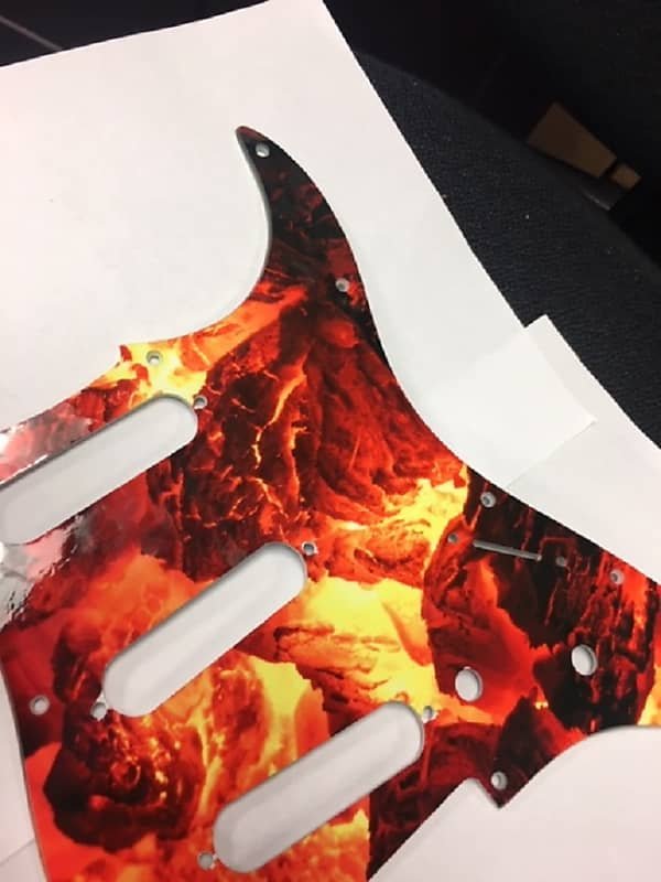 This is a cool Fire Ember graphic designed Stratocaster SSS pickguard & matching backplate... Buyer pays $7 shipping in the USA!