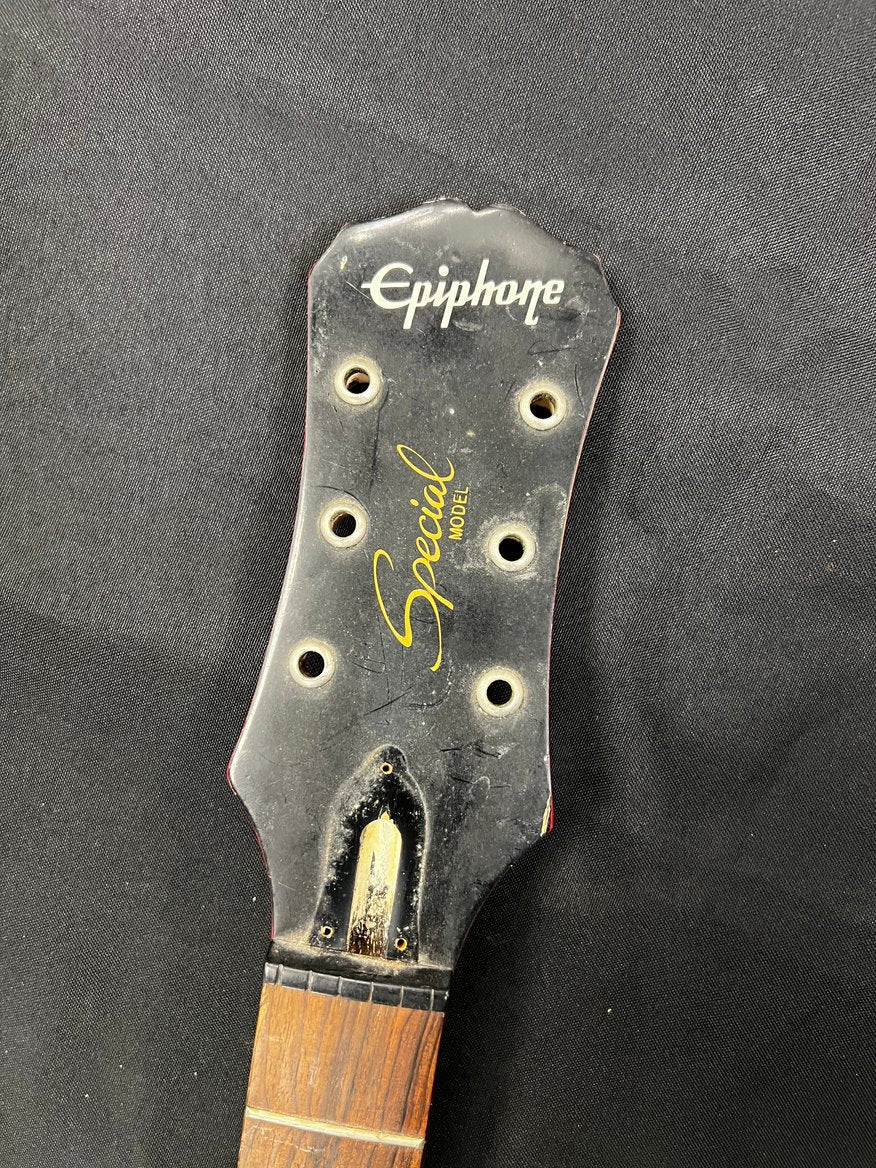 This is a used Epiphone Les Paul Special neck without the tuning keys.