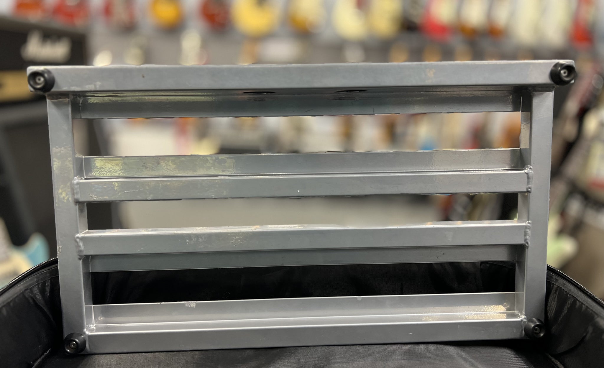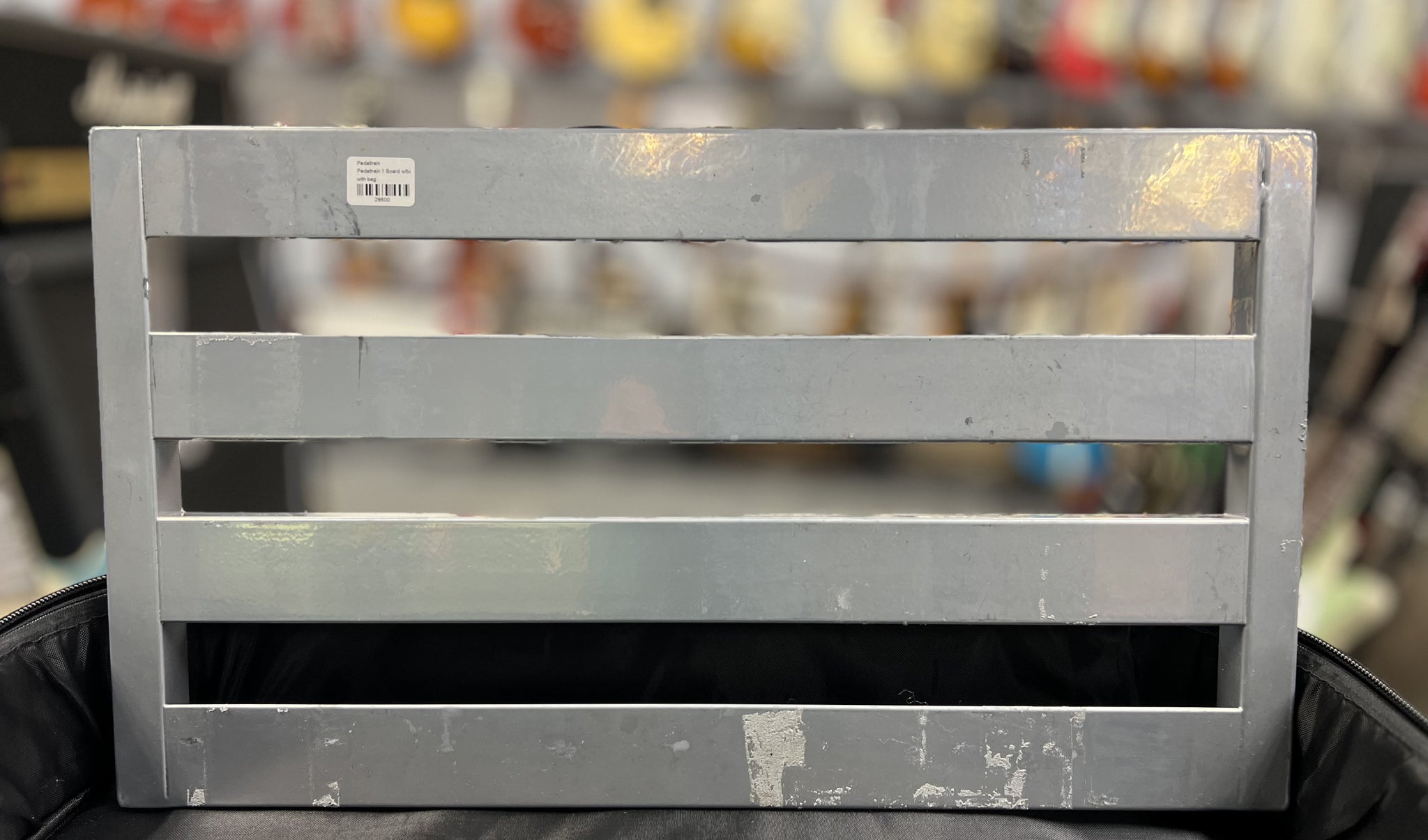 This pedal board has adhesive still on it. It's in good shape and comes with a Pedal Train gig bag.