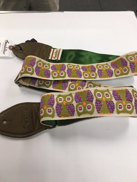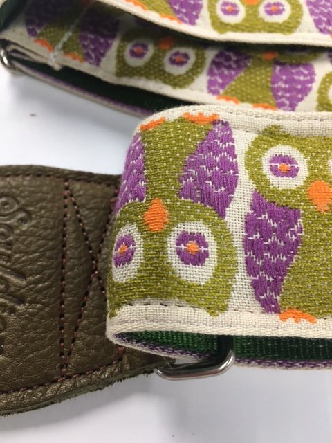 Souldier Guitar Strap Owls Purple w/ Olive Leather Ends *Free Shipping in the USA*