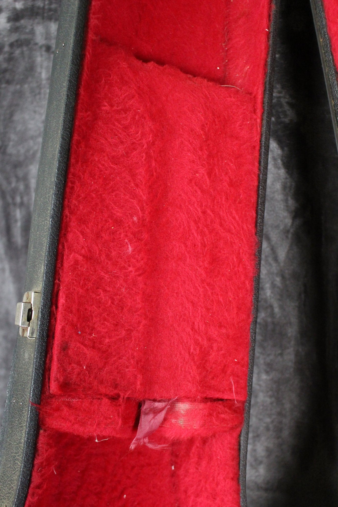 This is a very cool vintage Gibson Grabber hardshell case with red interior - very cool case with lots of character. We did notice that this case doesn't fit the newer Gibson Grabber reissue bass because the tuning keys are too big to fit in the case but it should fit most older Gibson Grabber, Ripper & G3 basses.