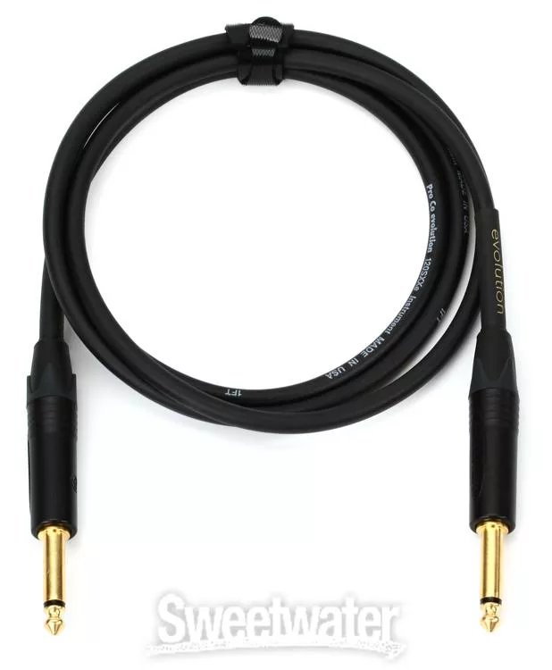 High-performance Audio Cable from Pro Co. The Evolution Instrument Cable from Pro Co represents years of design and redesign to bring you a premium, high-performance cable that transfers signal at the highest quality. The result is what matters the most in the world of audio: better sound, better performance. At Sweetwater, Pro Co Evolution cables are used time and time again, trusted for their durability and incredible performance.Detailed design and features . Evolution cables are engineered for superior sonic performance with dual shielding, Neutrik connectors, and 100% oxygen-free wire extruded in their own facilities. Great sounding and built to be durable enough for daily use, these cables are complete with a soft-touch jacket, which is easy on the fingers when plugging and unplugging over and over.Pro Co Evolution Instrument Cable Features:. 100% oxygen-free wire for long life and great sound. Noiseless dual-shielded design rejects outside noise. Neutrik connectors for a solid, clean connection. Supple soft-touch jacket.