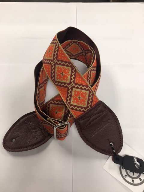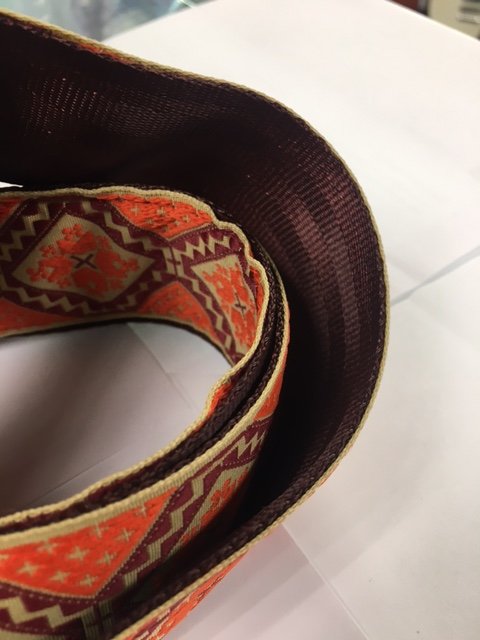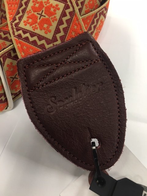 This is a new Souldier Rustic Burgundy Orange guitar strap with burgundy leather ends