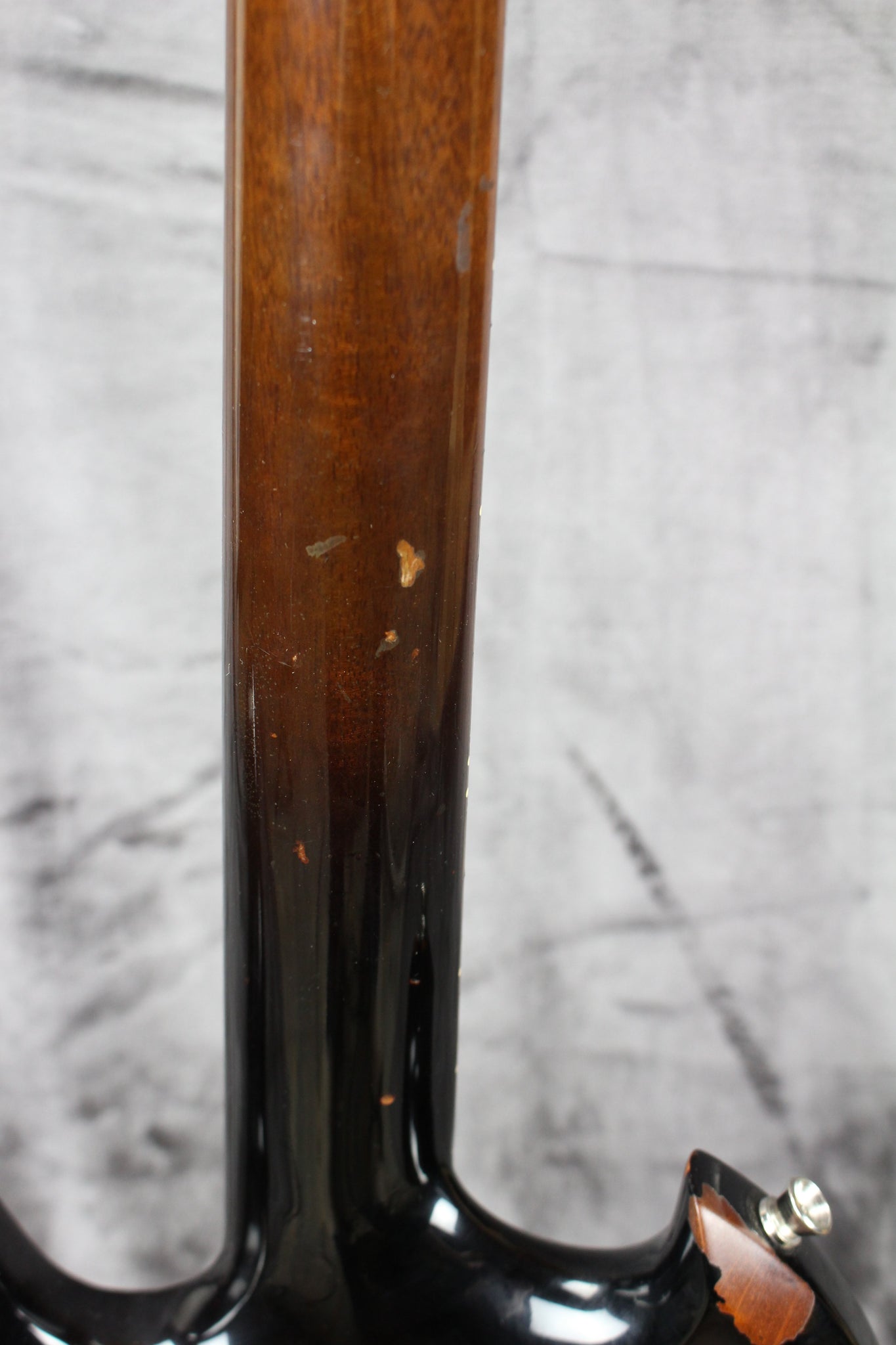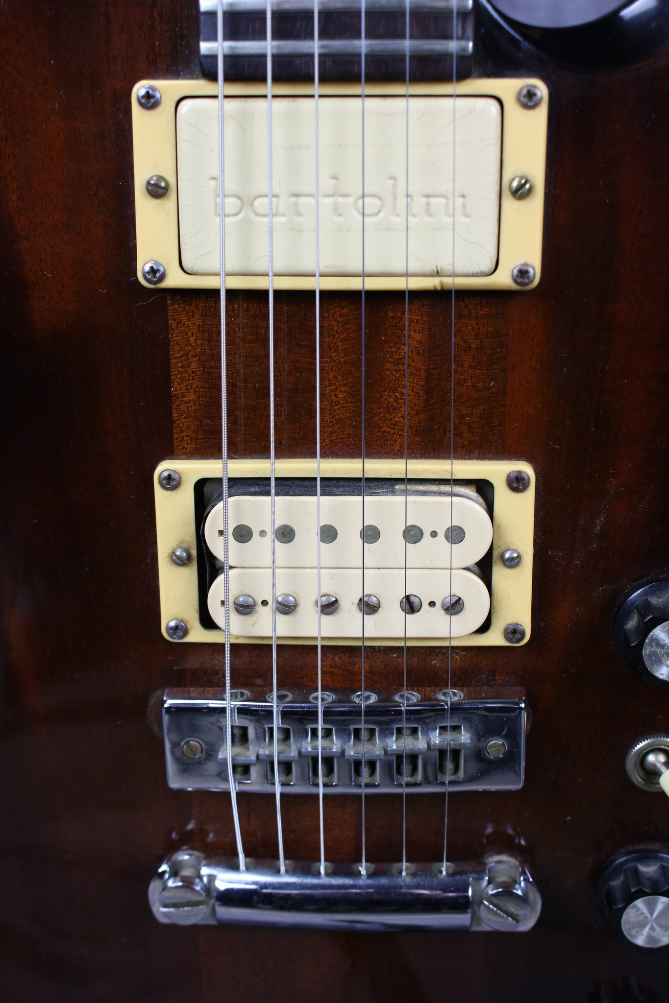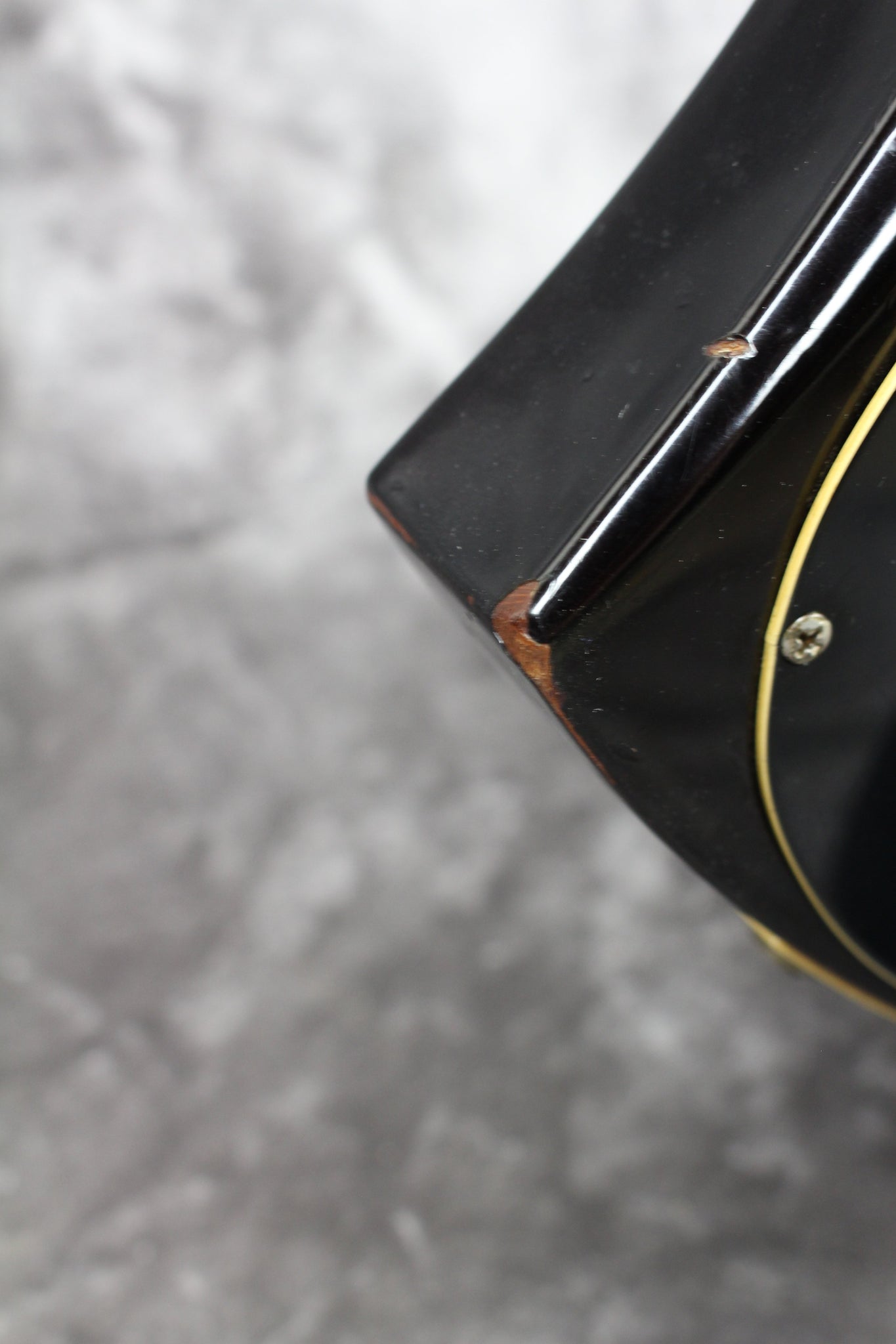 Modifications: The two pickups are both replacements and the toaster bridge is a replacement. Underneath the bridge, you can see where the old holes have been filled in and new holes have been made for the toaster bridge. The electronics are working but the guitar has been re-wired and is not the way it was originally designed (see photos). The varitone switch has been replaced and now is a tone roll off knob.