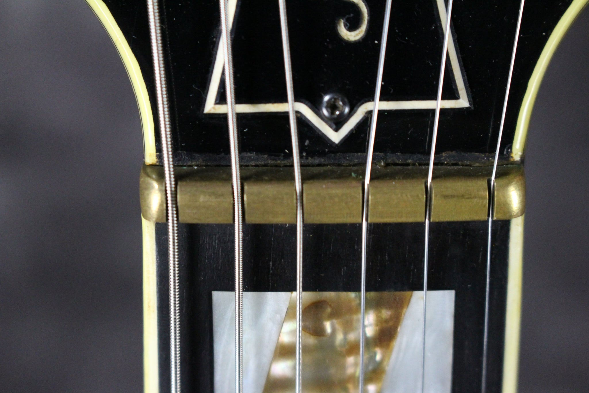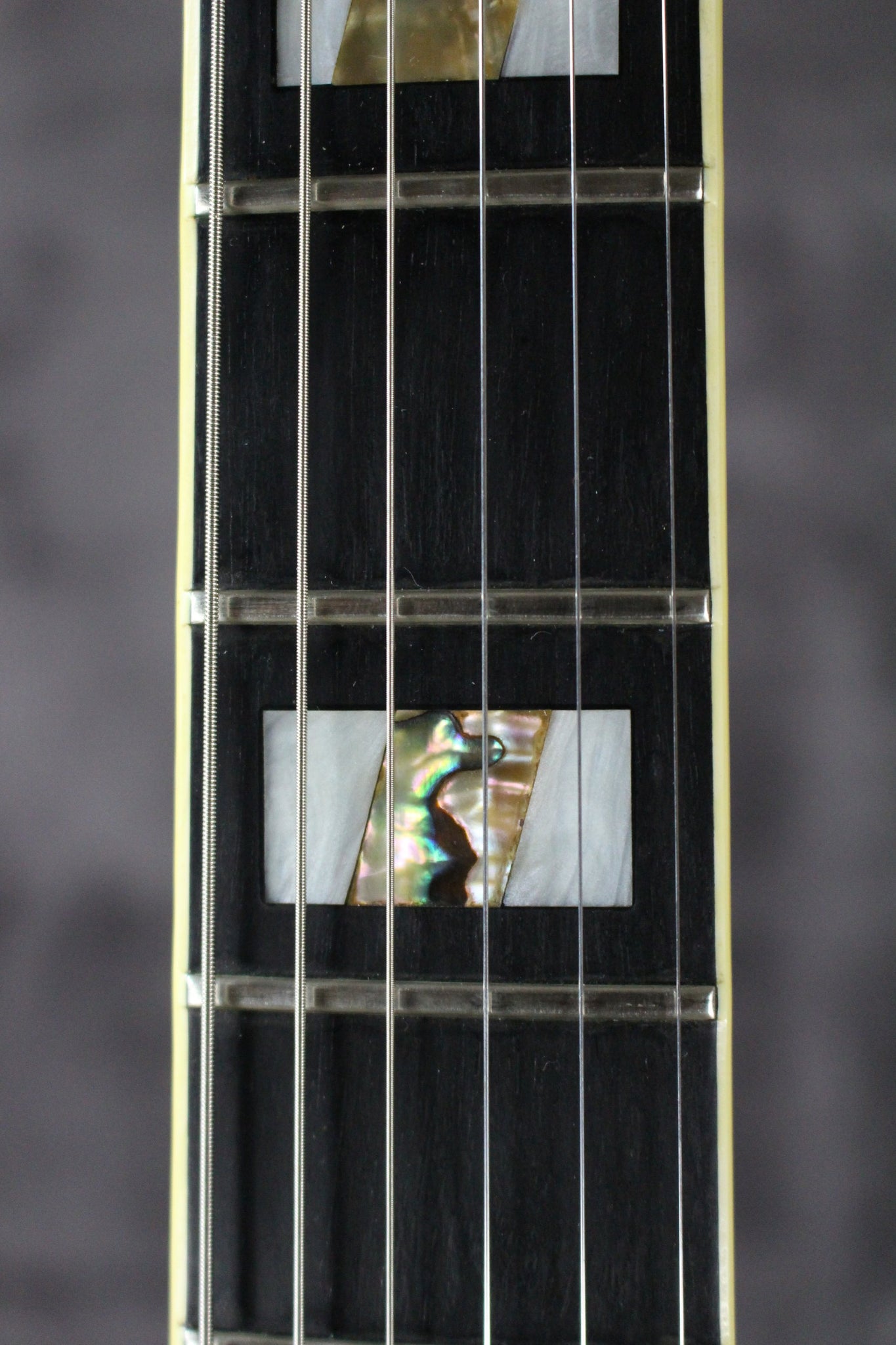 Neck: Maple with a bound Ebony fingerboard, 24.75” scale length, 1.68” nut width, 22 frets, pearl/abalone split block inlays.