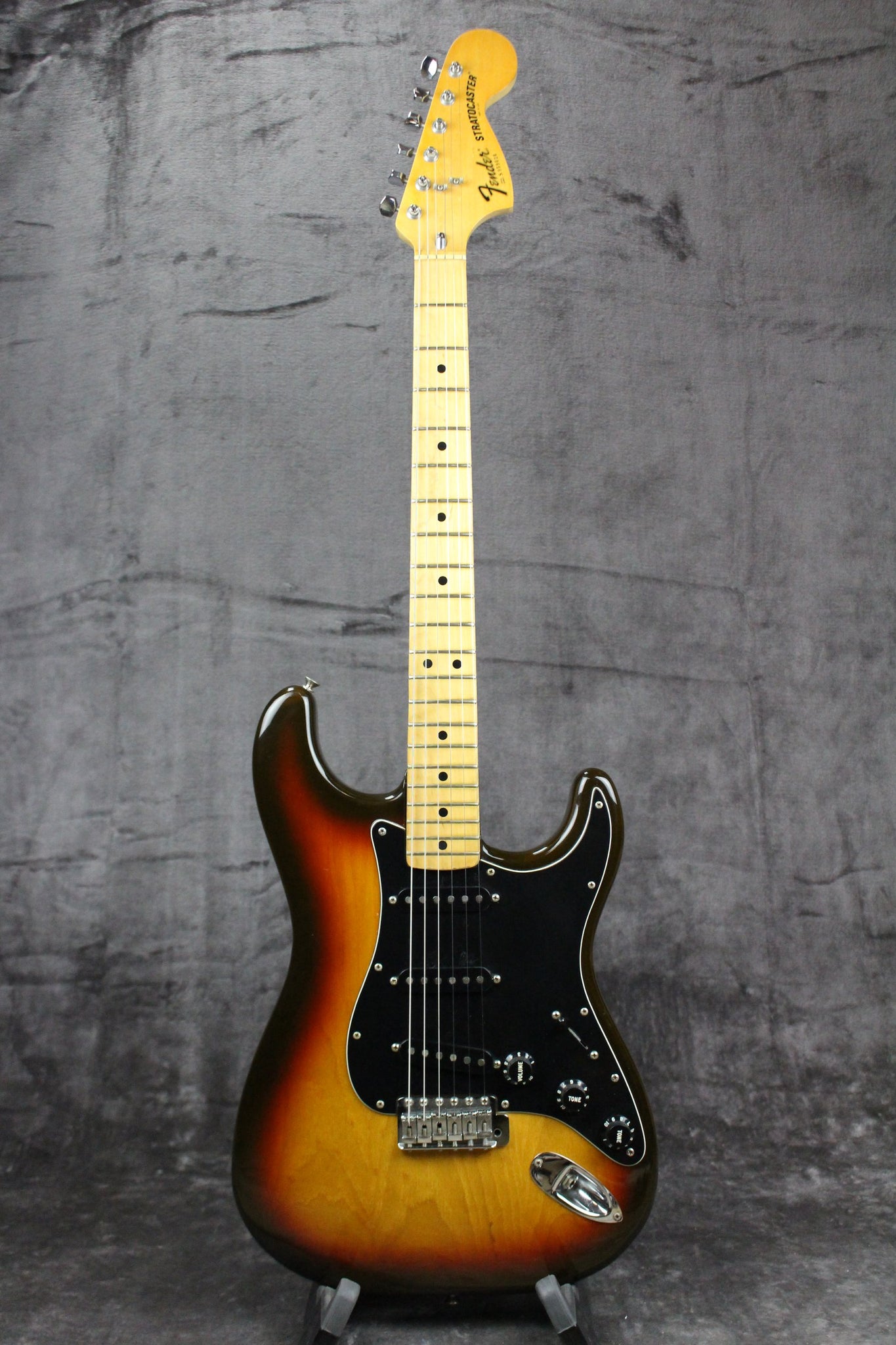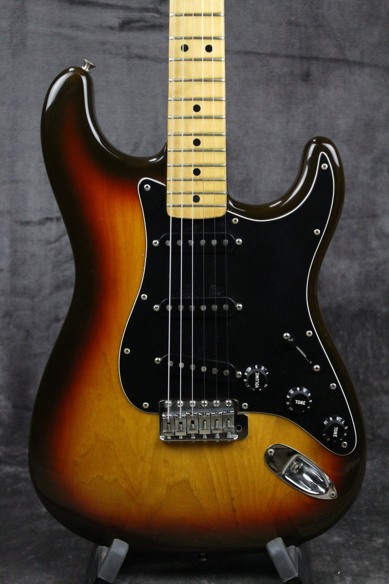 Body: Solid body, double cutaway Stratocaster with a beautiful dark vintage sunburst finish.