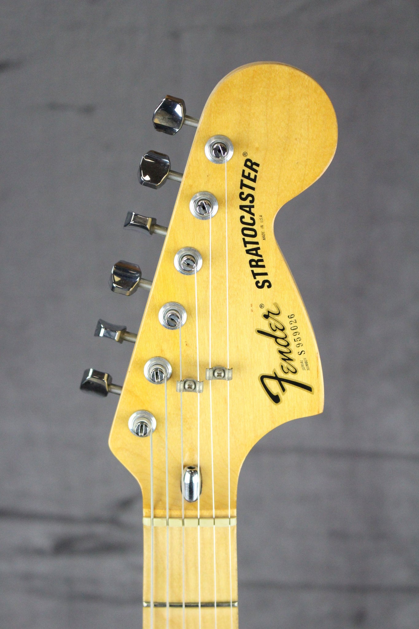 Pickups/Hardware: 3 original single coil pickups, chrome hardware, original “F” stamped tuning keys, original whammy bar, black pickguard, black knobs, black pickup covers, dot inlays, 5-way selector switch.