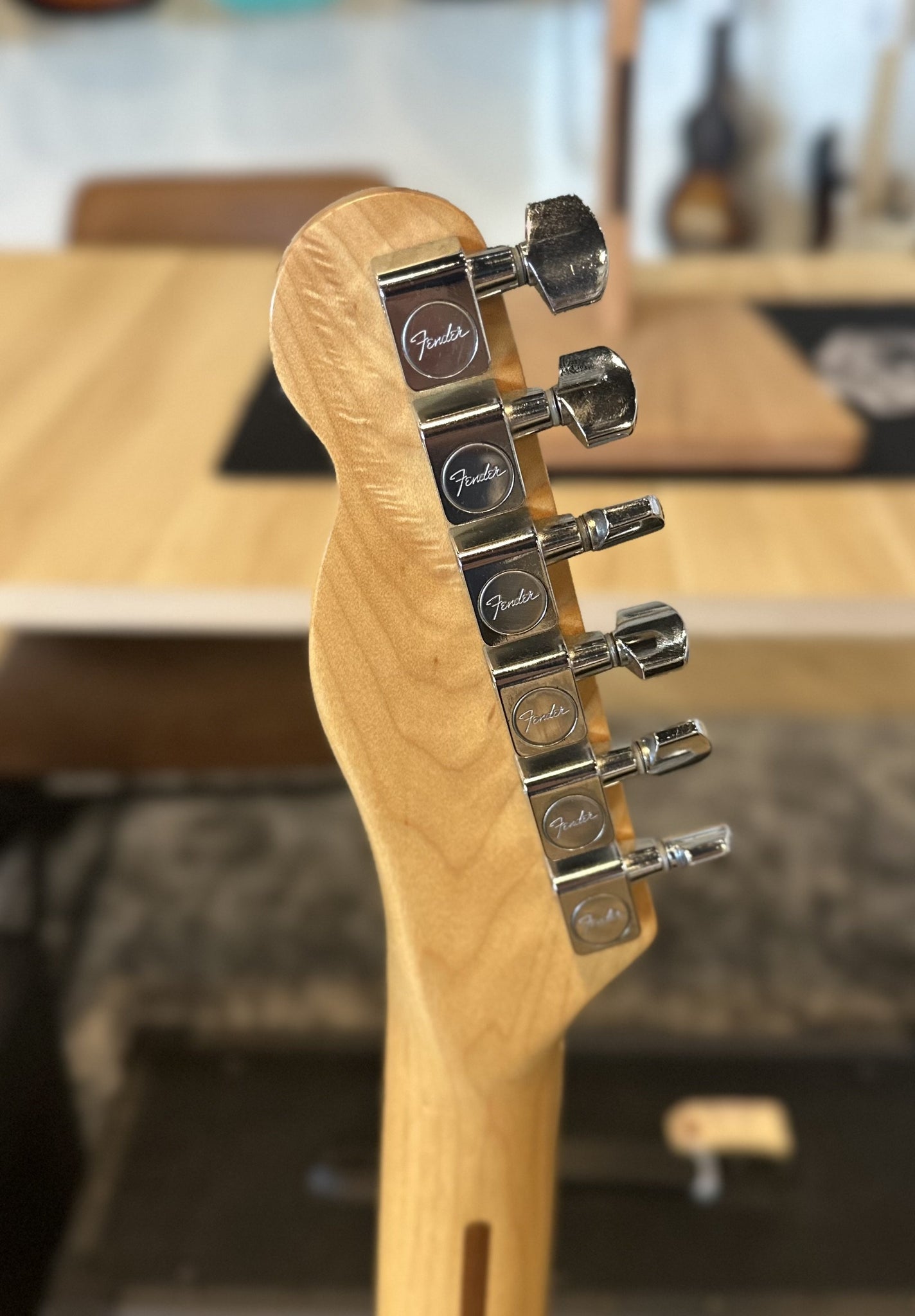 Like most enduring electric guitar designs, the Fender Telecaster has evolved through decades of production, with subtle changes marking different eras. This 1988 Fender Telecaster sports a classic and beautifully aged Sunburst finish that highlights the wood grain beneath its gloss. It features a white single-ply pickguard and retains the traditional Telecaster control layout. The guitar is equipped with its original single-coil pickups, delivering the bright, punchy tone that defines the Telecaster sound. Modern-style Schaller “Fender” tuning machines provide stable tuning, while the six-saddle bridge allows for more precise intonation than vintage models. A great example from the late '80s, this Telecaster bridges vintage style with updated functionality.