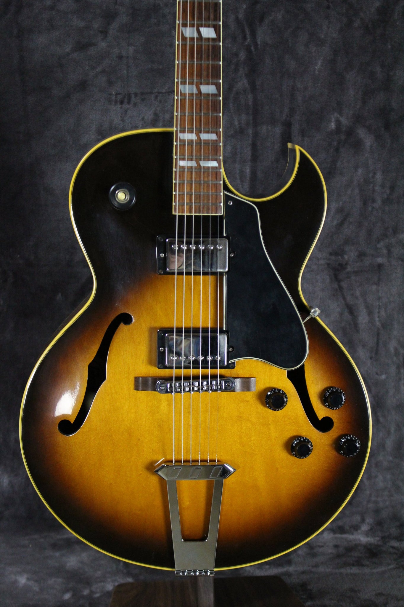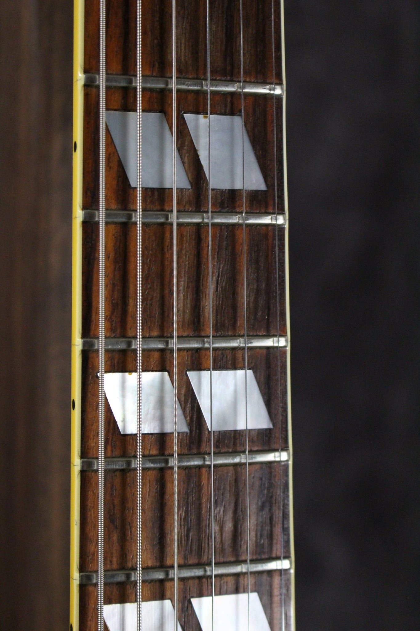 Pickups/Hardware: Gibson PAF style humbucking pickups and electronics, beveled 5-ply pickguard, gold bonnet knobs, Rosewood adjustable compensated bridge with chrome Tune-o-matic bridge, Grover Deluxe tulip key tuners, trapeze tailpiece with raised-parallelogram crossbar.