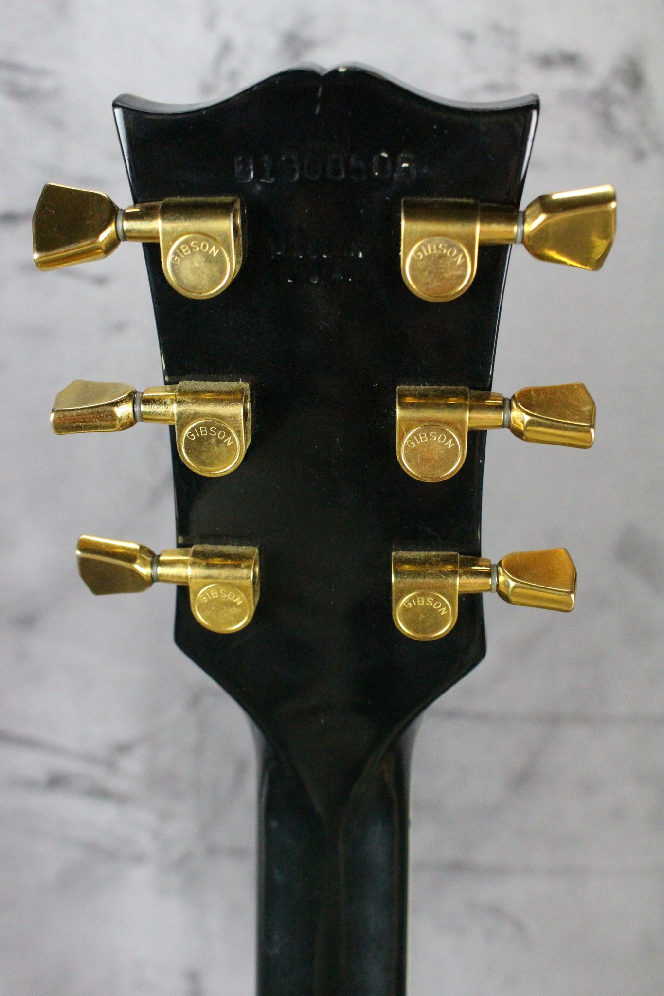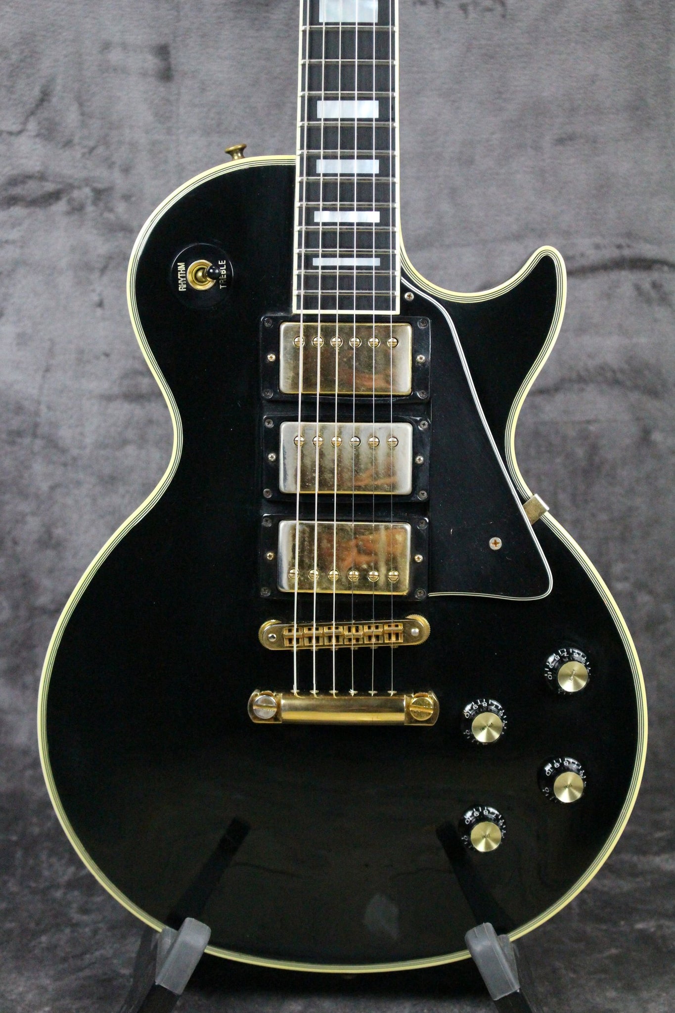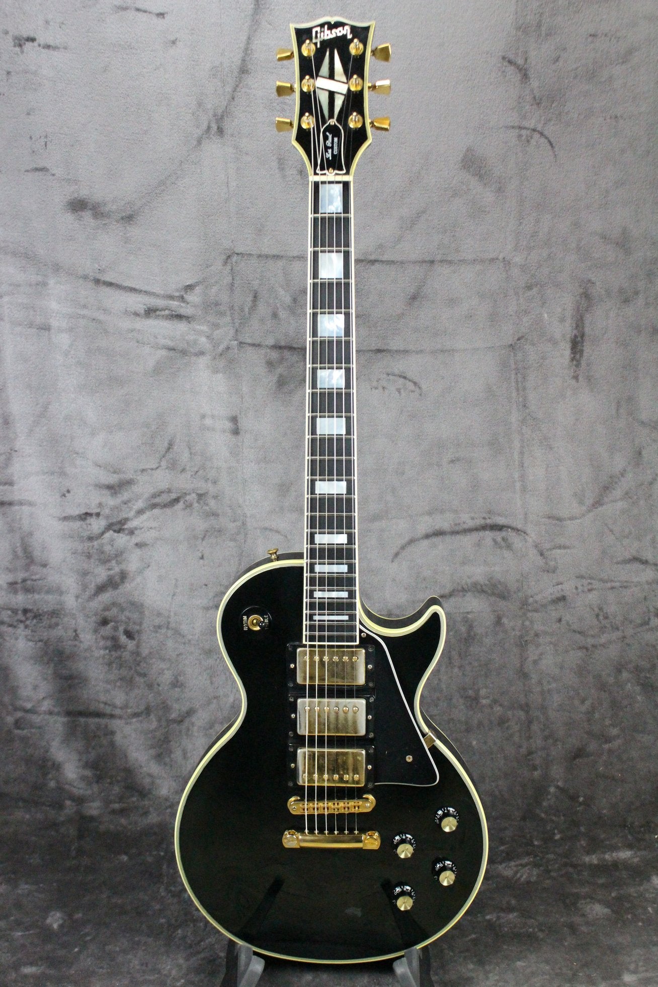 Pickups/Hardware: 3 Gibson humbucker pickups, gold hardware, gold Gibson tuning keys, Les Paul Custom truss rod cover, tune-o-matic bridge and stop tailpiece. Two volume knobs and two tone knobs and a 3-way switch, 5-ply pickguard.