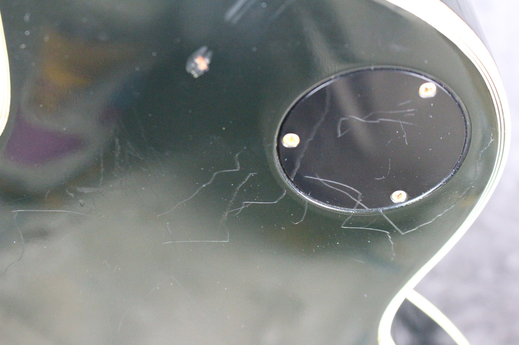 Body: Solidbody, single cutaway Les Paul with an ebony finish. The top and the back are both fully bound.