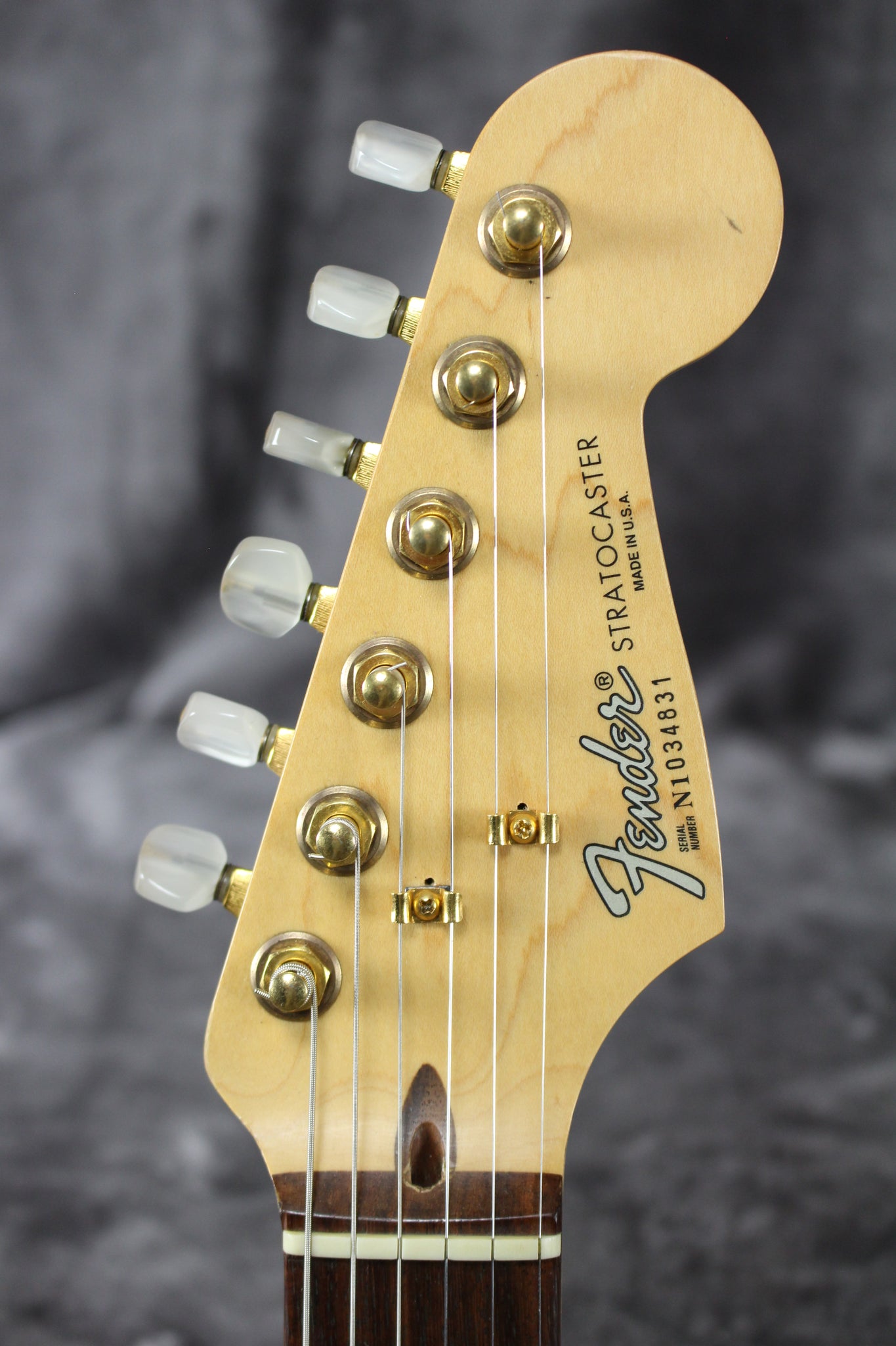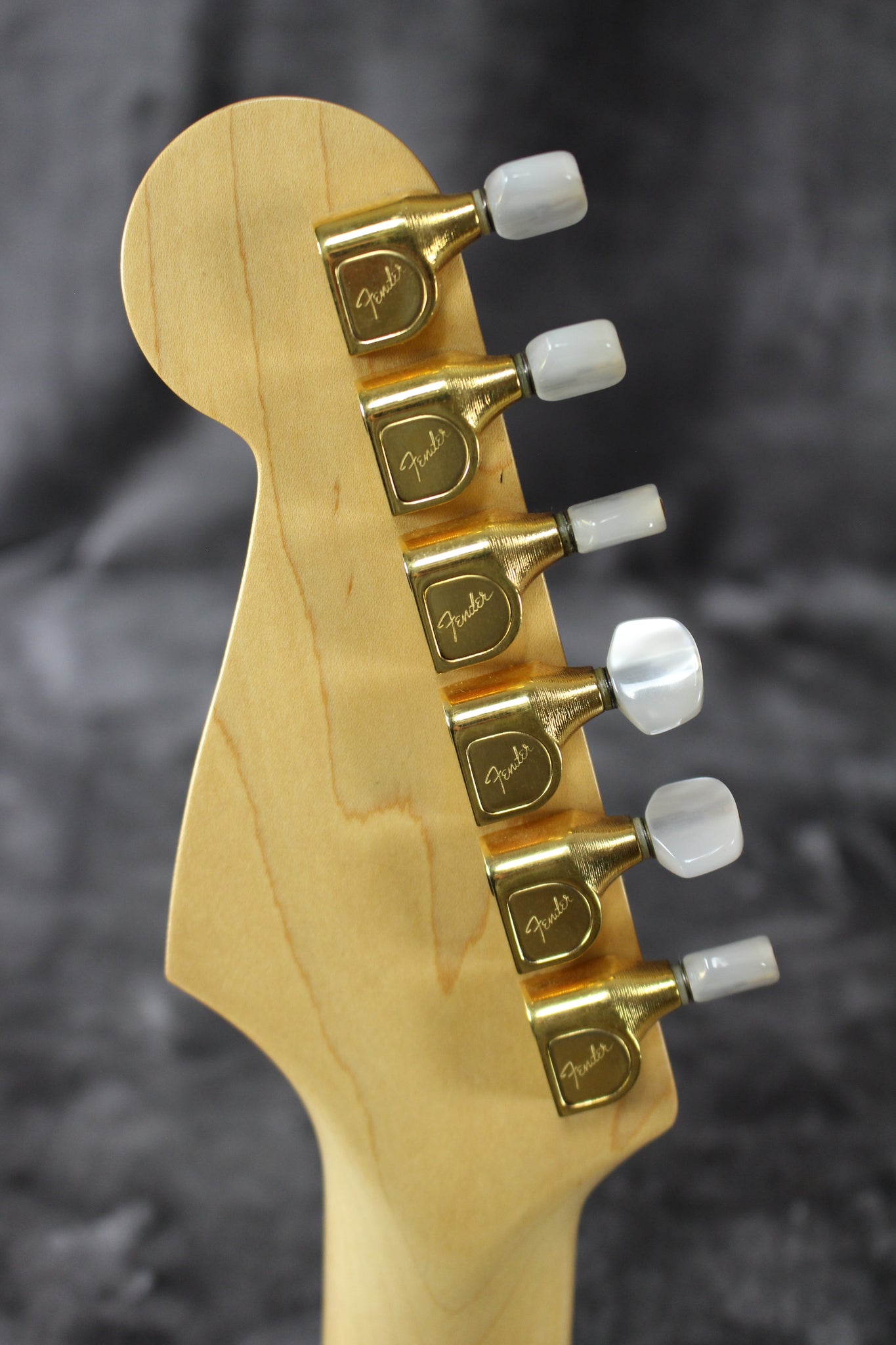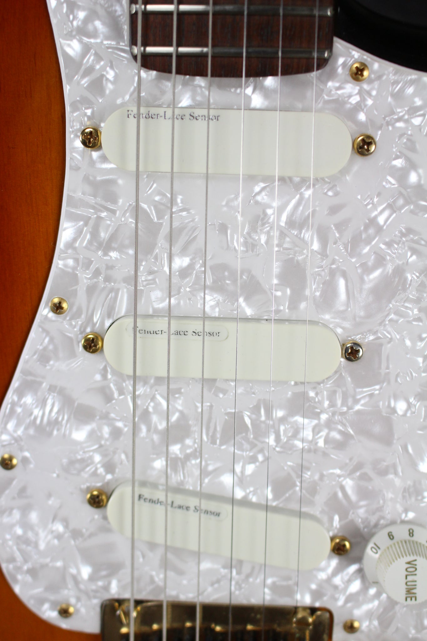 Modifications: Lace Sensor pickups, TBX tone knob, new gold hardware throughout, new Fender pearl tuners.